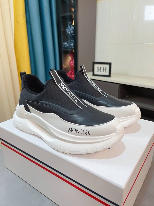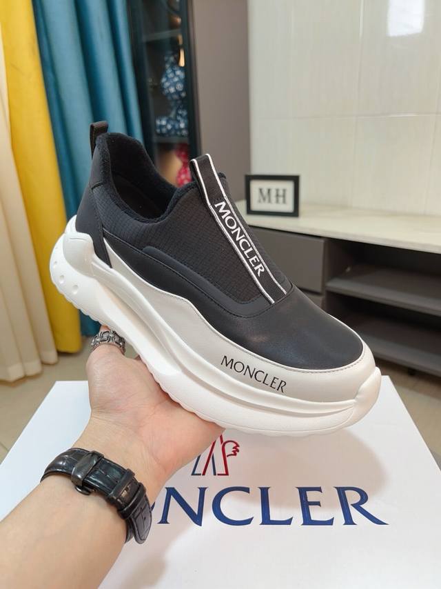 实价 Moncler 蒙口、官网同款 高品质男鞋 材料 定制小牛皮 网布透气内里真皮鞋垫 原版开模防滑大底款式类型 男士休闲运动鞋...