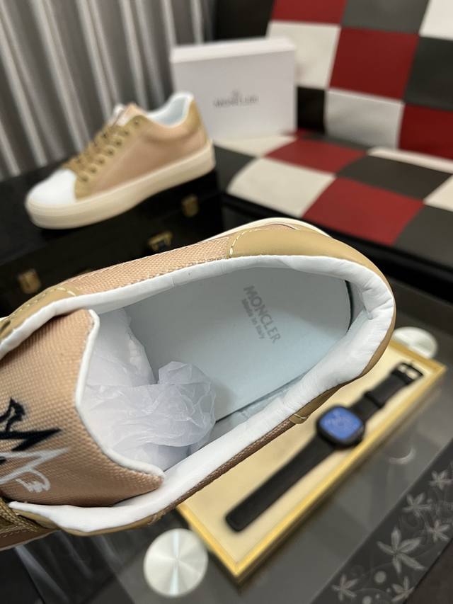 出厂价p Moncler 蒙口、官网同款 高品质男鞋 材料:布料印花真皮透气内里真皮鞋垫 原版开模防滑大底款式类型:男士休闲运动鞋...