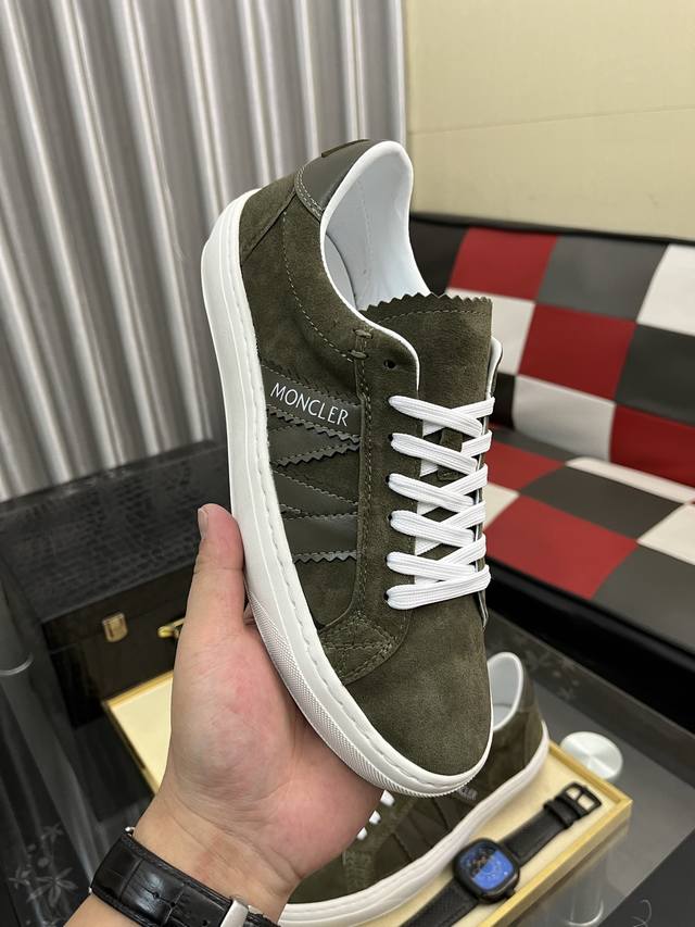 出厂价Pp: Moncler 蒙口 低帮休闲鞋 正码码数: 38-46 商品材料:鞋面进口磨砂皮拼接布料,透气内里,原版大底。5色可选