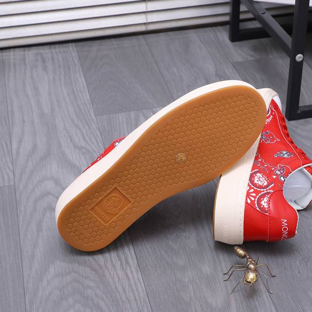 出厂价pp: Moncle * 蒙口男士休闲板鞋,进口飞织搭配滴胶,柔韧性能好,抗皱性强 经久耐穿,小块黑白红三色点缀...