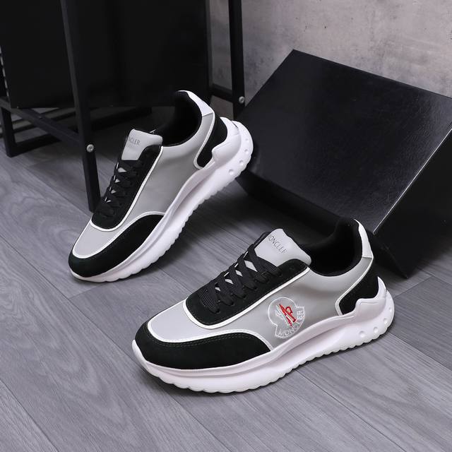 / 调工厂P价 男装男鞋 运动原单 商品商标:Moncler 蒙口 休闲鞋 正码码数: 38-46 45.46定做不退换 商品材料:精选磨砂牛皮拼接鞋面 网内里 牛