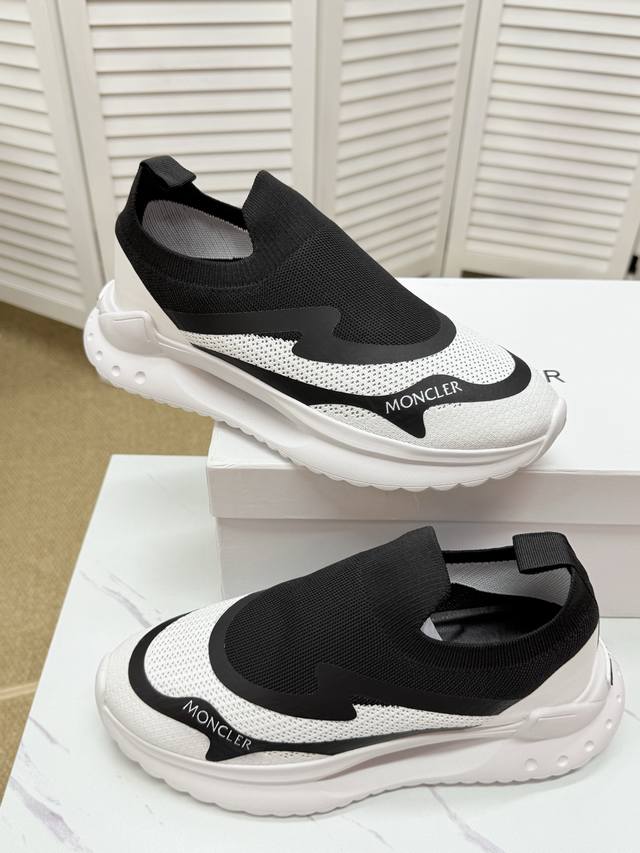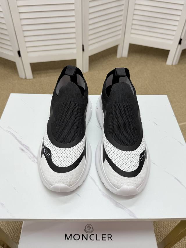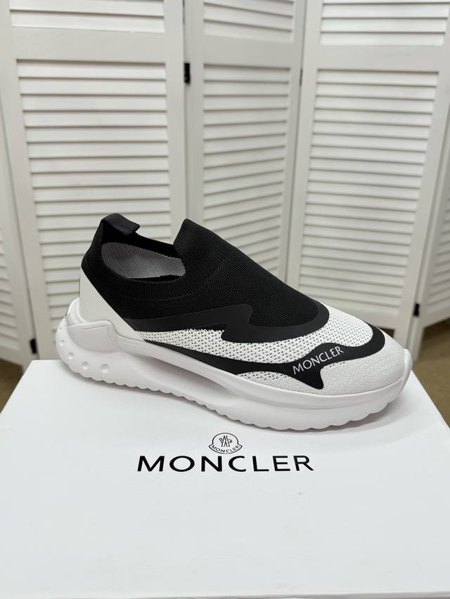 调工厂P价 男装男鞋 运动原单。情侣款 Moncler 休闲运动鞋,头层牛皮搭进口网布面料柔软舒适透气 一脚蹬设计理念合脚大气...
