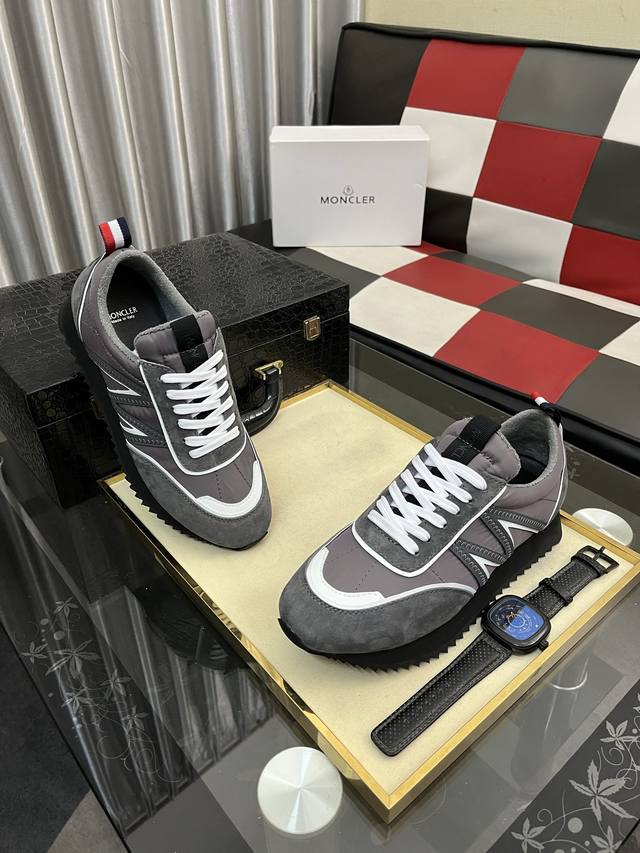 Moncler 盟可睐 蒙口 -高端品质 原单 休闲运动鞋 -鞋面;粒面纹小牛皮、品牌帆布布匹车缝线、鞋口弹力飞织 针织...