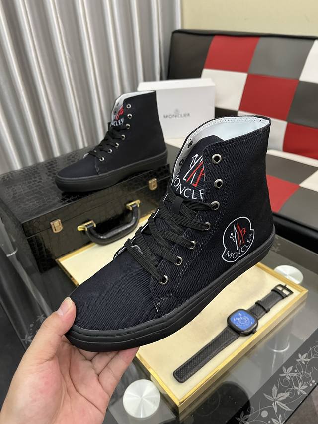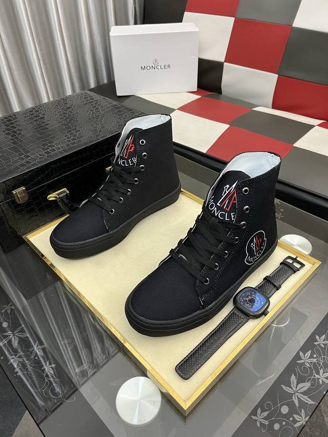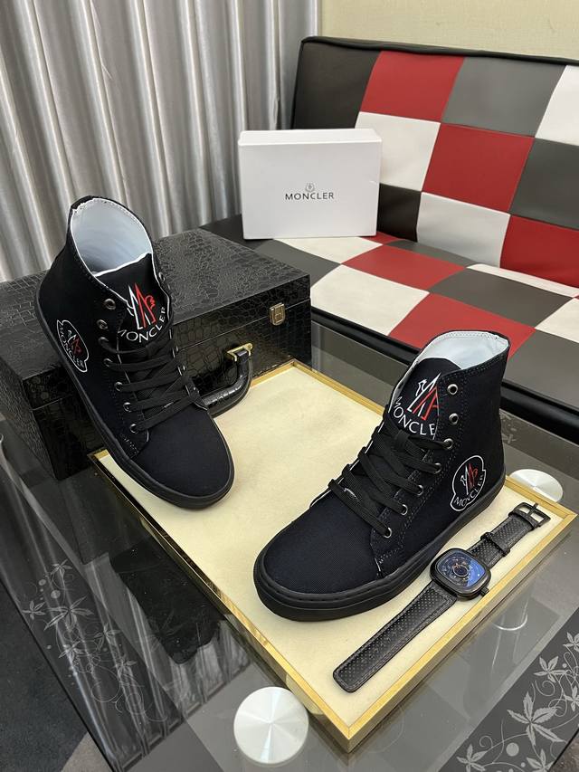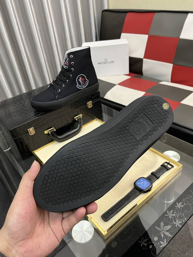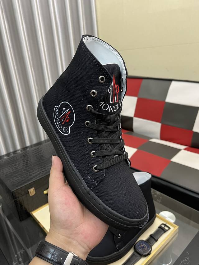 出厂价p Moncler 蒙口、高帮官网同款 高品质男鞋 鞋面布料印花 真皮透气内里真皮鞋垫...