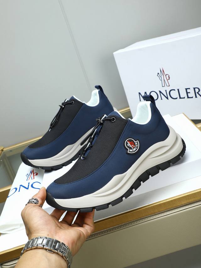 Moncler蒙口男士户外系带运动鞋,具有舒适防滑性能,专为户外跑步或都市漫步而设。兼备创新、功能性与图形细节于一体,从高山氛围汲取灵感,诠释潮流时尚。多种原版材料拼接而成,鞋面采用牛皮拼接+透气内里!大底采发泡超轻大底,具有高弹性高耐磨性,提高舒适性!39-44 38 45定做 多色选