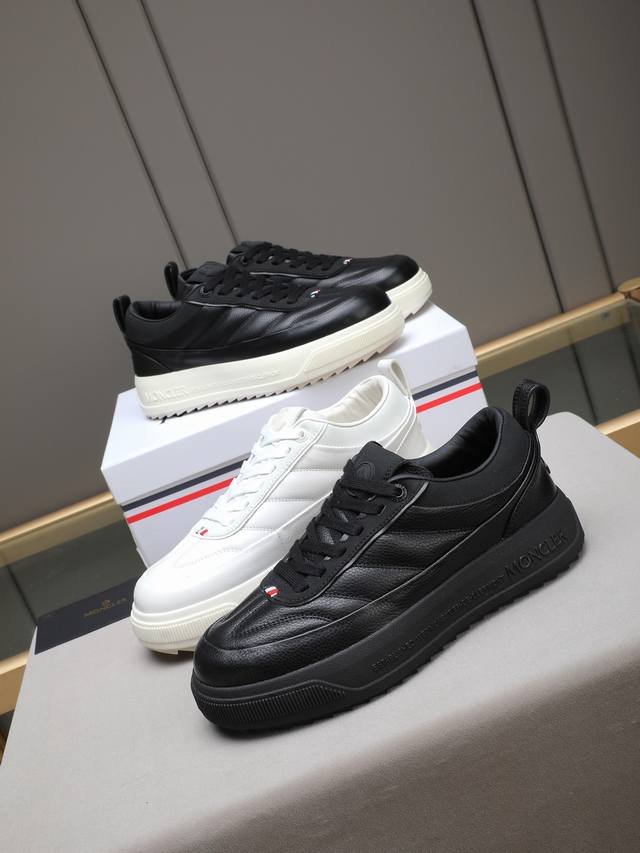 Moncler蒙口男士户外系带运动鞋,具有舒适防滑性能,专为户外跑步或都市漫步而设。兼备创新、功能性与图形细节于一体,从高山氛围汲取灵感,诠释潮流时尚。进口头层牛皮牛里!鞋面采用鞋带和橡胶嵌件设计,大底采发泡超轻大底,具有高弹性高耐磨性,提高舒适性!39-44 38 45定做 DDD