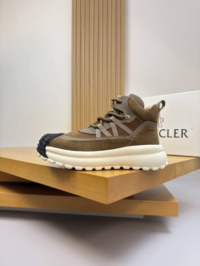 / Moncler 盟可睐 蒙口 -高端品质 原单 高帮休闲运动鞋 -鞋面;进口纳帕小牛皮、磨砂荔纹小牛皮、高丝光反绒小牛皮、鞋舌.车缝品牌Logo模块、后跟品牌织