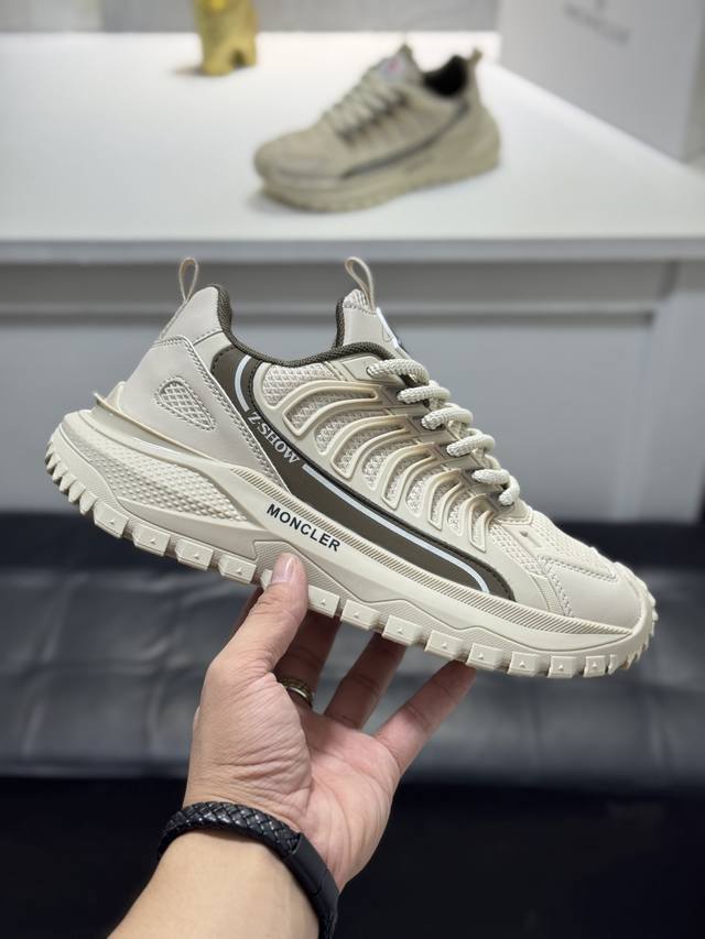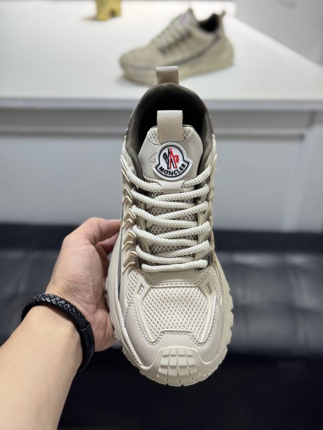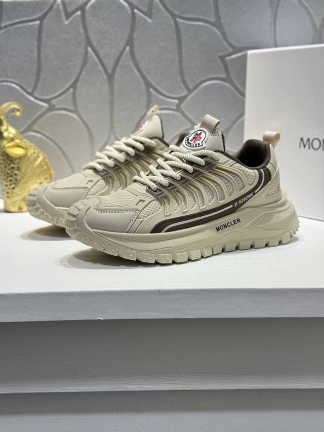 Moncler 蒙口男士休闲运动鞋,具有舒适防滑性能,采用牛皮拼接网面,兼备创新、功能性与图形细节于一体,诠释潮流时尚。大底高弹橡胶成型大底,具有高弹性高耐磨性,提高舒适性! DDD Size:38-44 45定制 DDD