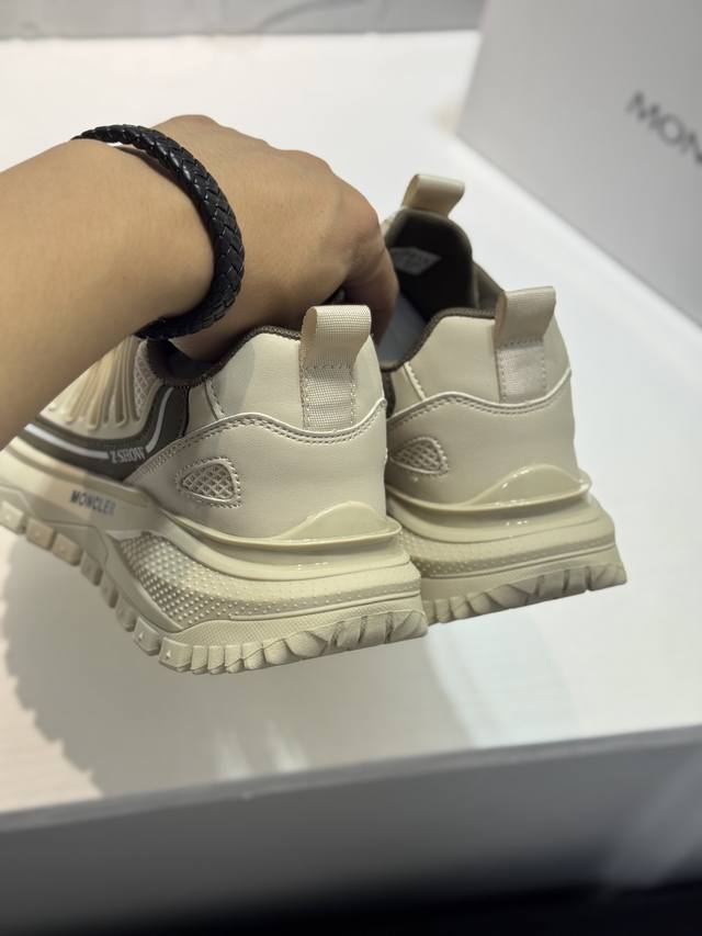 / Moncler 蒙口男士休闲运动鞋,具有舒适防滑性能,采用牛皮拼接网面,兼备创新、功能性与图形细节于一体,诠释潮流时尚。大底高弹橡胶成型大底,具有高弹性高耐磨性