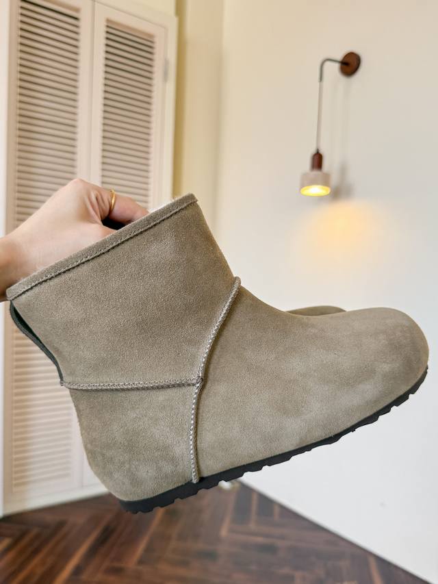 一直走在时尚前沿的勃肯鞋,简约大气的独有的鞋头风格,一直活跃在时尚界,这款面料采用进口牛反绒,澳洲进口羊毛里和垫脚,舒适的3公分水台,让你的体验感美的飞起!码数