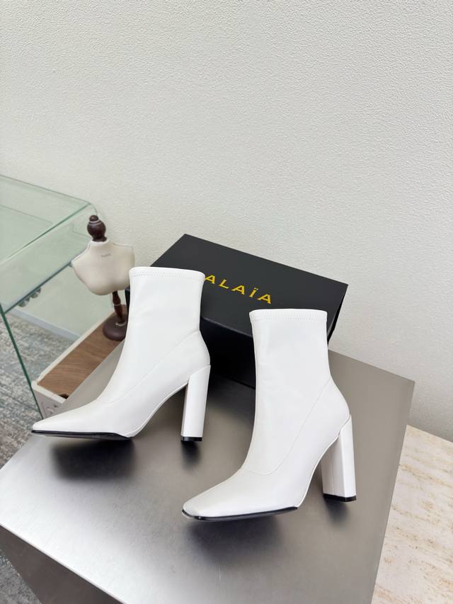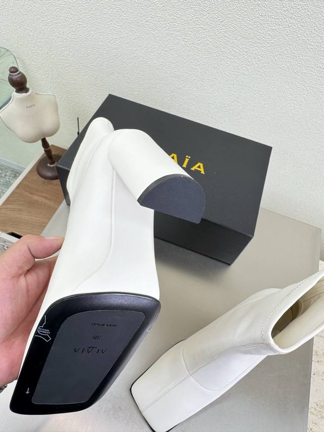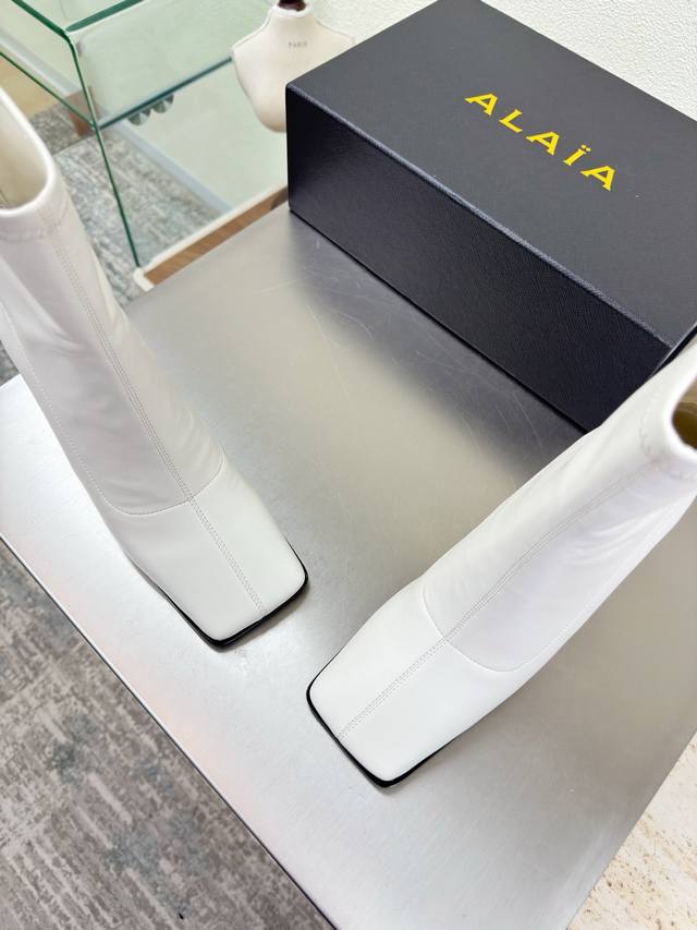 一脚蹬弹力靴 材质 面料包裹大底 方头 DDD 紧肤小腿 9Cm 跟高 靴子 Alaia DDD 来自巴黎 一见倾心 DDD 白色弹力材质 DDD 阿莱娅还有另外性感的一面 DDD 配上不同款式,不同风格都能轻松驾驭,无论牛仔裤,西装裤,还是百褶裙,都能将你的穿搭提升到时尚,优雅和卓越之中 DDD 面料选用 弹力材质 DDD 内里羊皮 DDD 大底原版一致真皮大底 DDD 34 35 36 37 38 39 40 41 34 40 41定制 DDD 配置原版包装 DDD