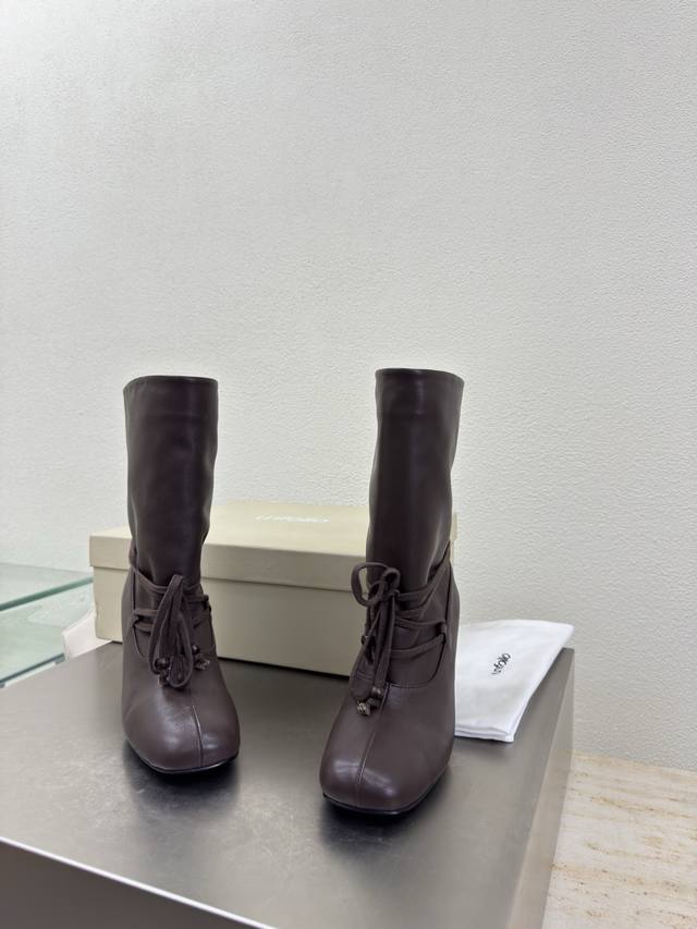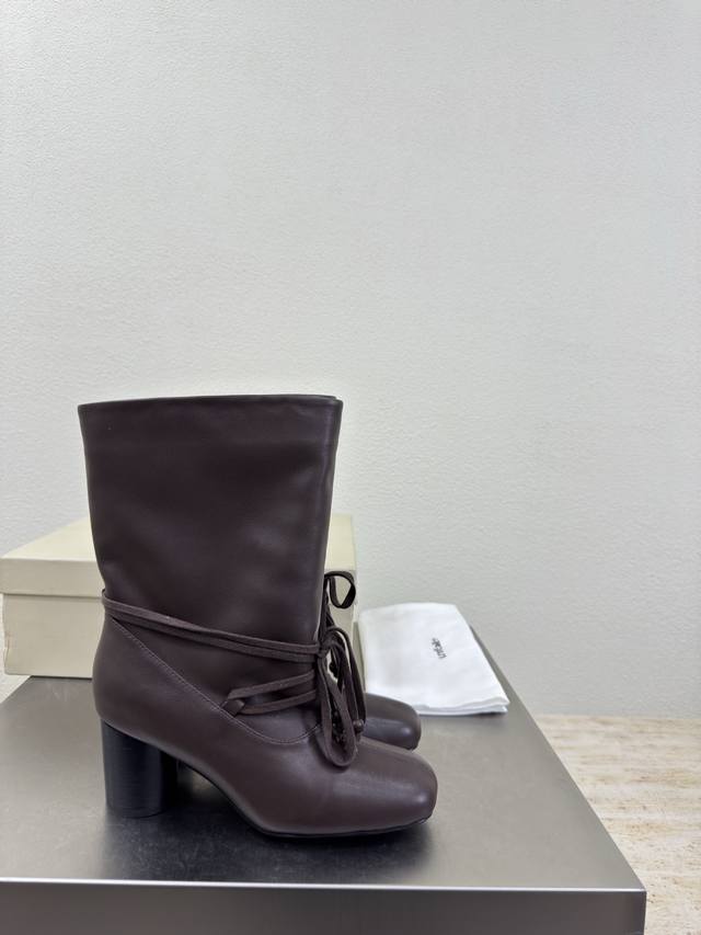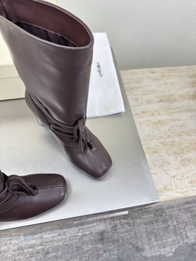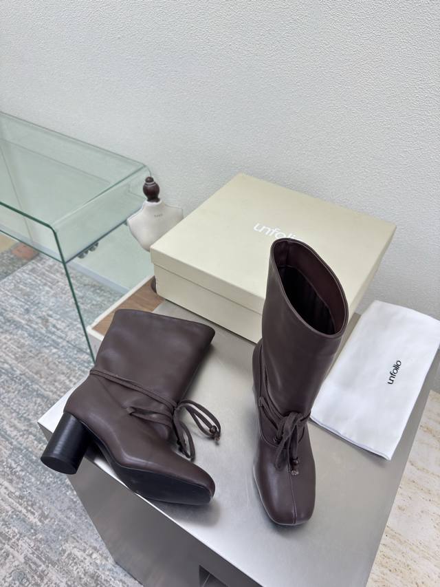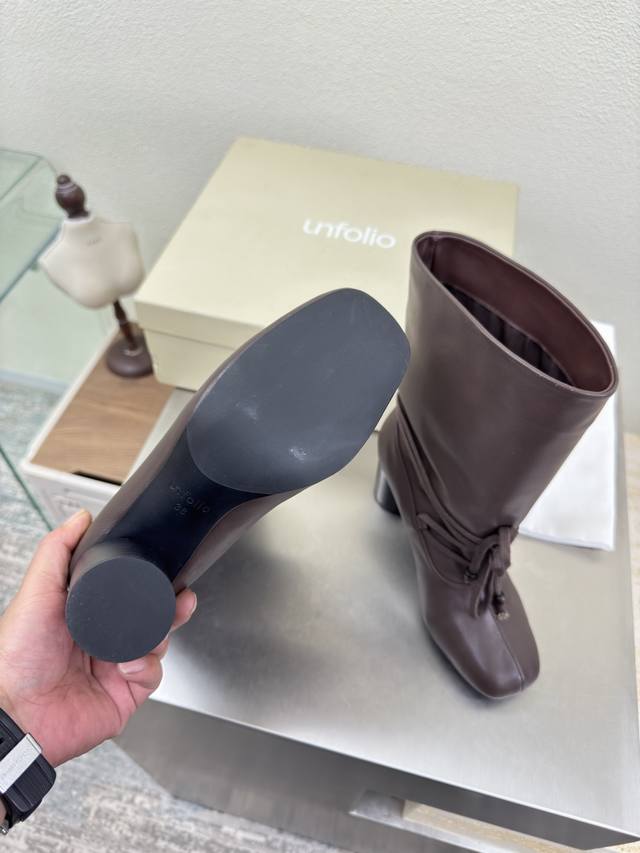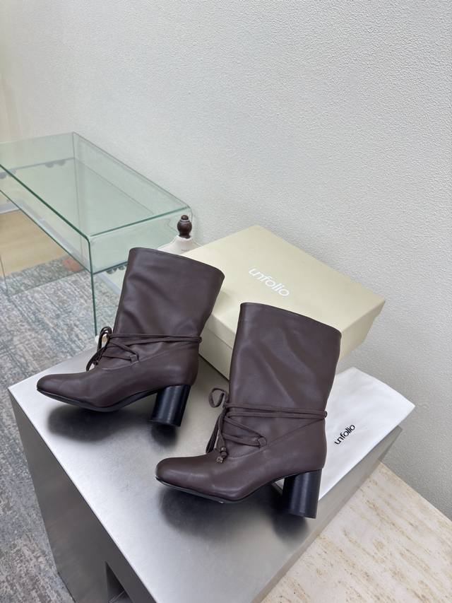一脚蹬 中跟 易搭配 Unfolio精品 短靴 小众设计师25发布会新款 咖啡色 面料选用 小牛皮设计 内里舒适羊皮里 原版可回收材质收腰流线型橡胶大底 码数
