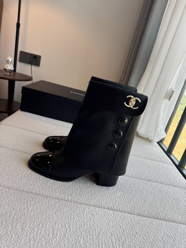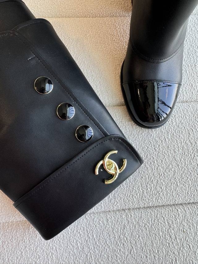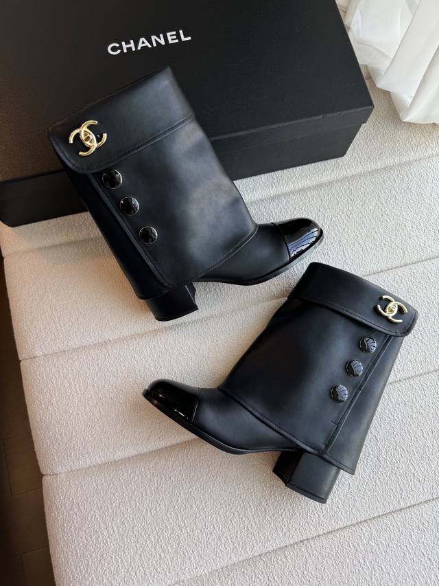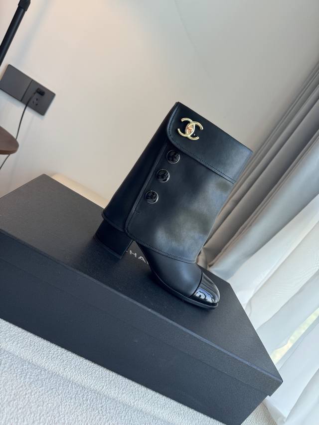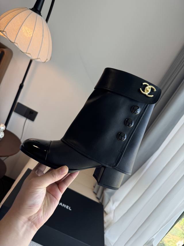 上新拉 Ch*Nel香*儿最新款 皮靴!阔腿款中筒靴 高筒靴,超级设计感 随性搭配 刚上新专柜断码中 ,怎么搭都是超级有范的一款,靴面头层小牛皮+原版五金扣!内