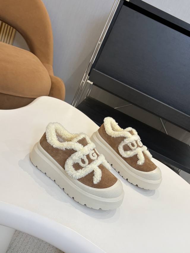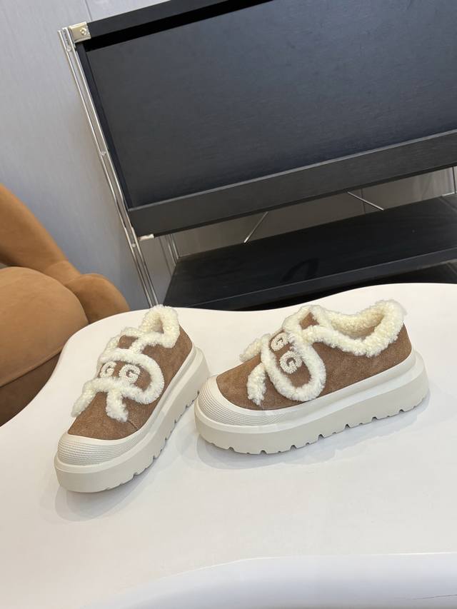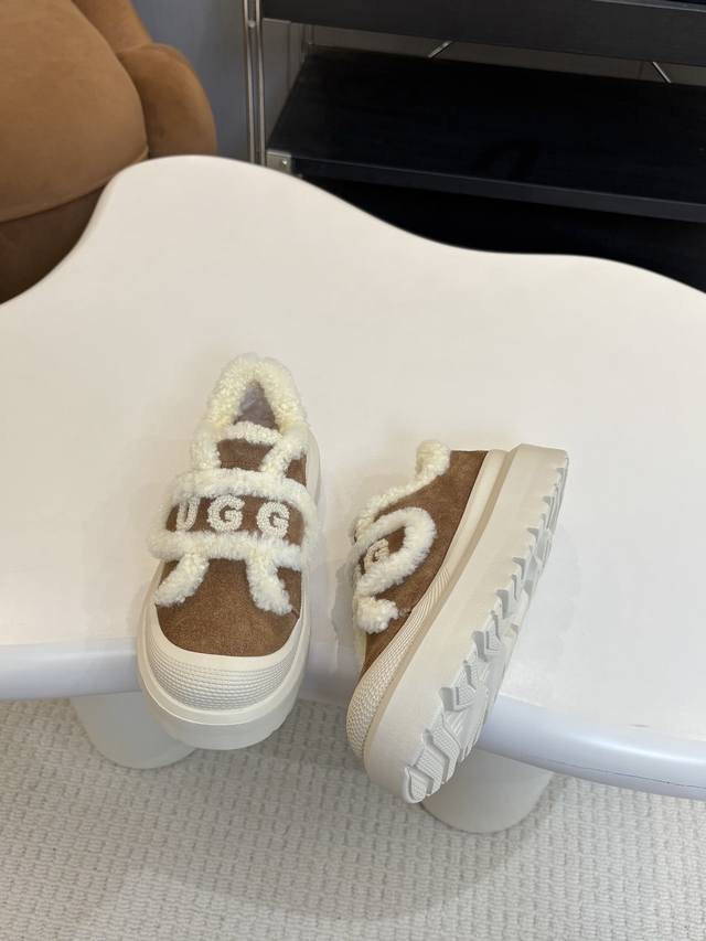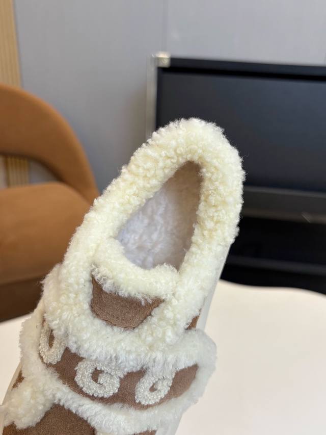上新 货号:Ugg1130536 材质:牛皮羊皮毛 Pu发泡大底,爆款流行王一博大底 毛巾刺绣Ugg。拼毛设计超可爱, 猛鞋传统工艺,垫脚海绵软软的,踩屎感 颜