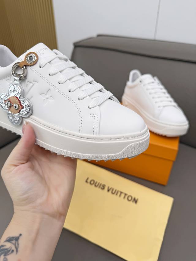 上新 DDD 这款Time Out运动鞋的版本细节丰富,采用光滑的小牛皮材质,装饰有镜面效果皮革的镶边。侧边则装饰有Vivienne标签,该标签由天然皮革和镜面效果皮革制成,上面压印着Monogram图案。 DDD 码数:35-42码, 34和42码可订做 男码,38-45 欢迎上图下单! DDD