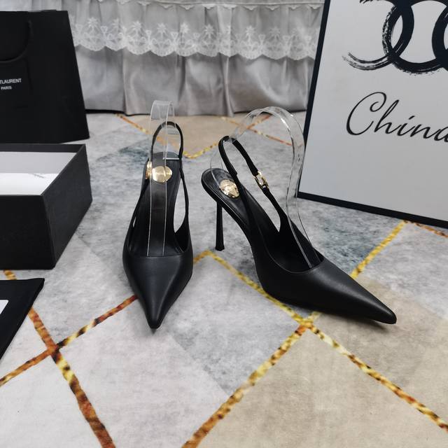 上新 顶级高版本 2025官W同步新款后空高跟尖头凉鞋 细节处理完美 垫脚羊皮 质感细腻 Aaa级意大利黑色真皮大底 极致完美复刻 1鞋面:进口牛皮 2垫脚:进口羊皮 3鞋底:Yb黑色真皮大底 4Size:34-43 34 41 42 43订做不退换 5跟高:10.5Cm 6Clour:⑤色入