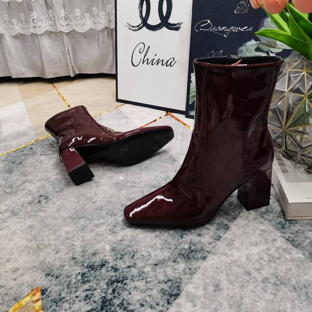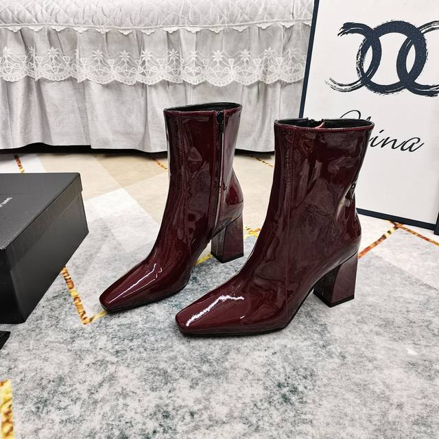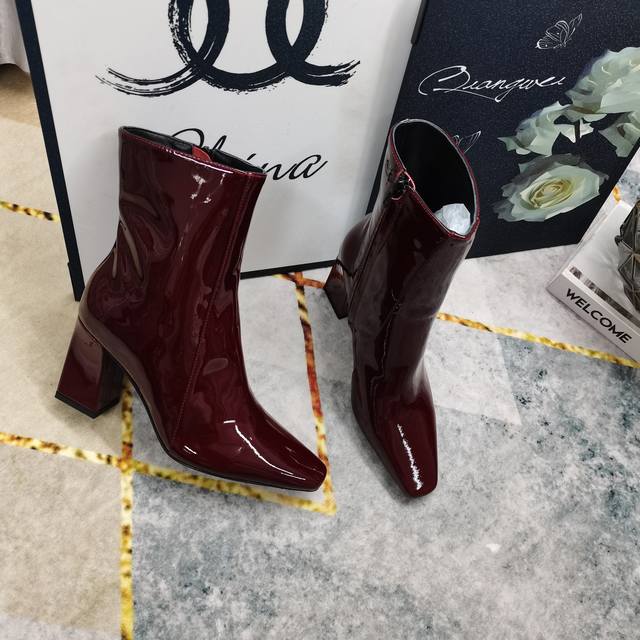 FFF 上新2025新款侧拉链方头粗跟短靴 DDD 细节处理完美 DDD 垫脚羊皮 质感细腻 DDD Aaa级意大利黑色真皮大底 DDD 极致完美复刻 DDD 1鞋面:进口漆皮 DDD 2垫脚:进口羊皮 DDD 3鞋底:Yb黑色真皮大底 DDD 4Size:35-41 41订做不退换 DDD 5Clour:③色入 DDD DDD