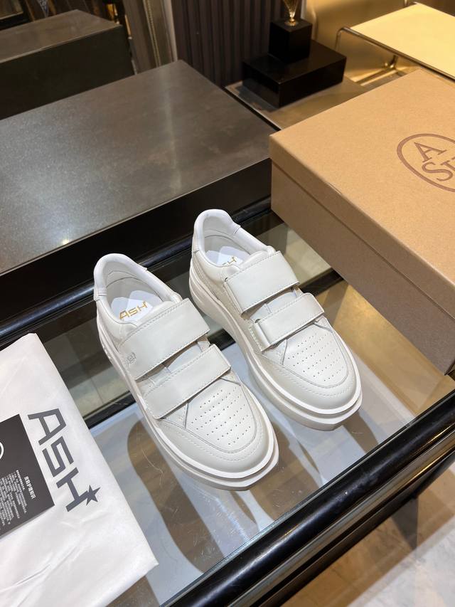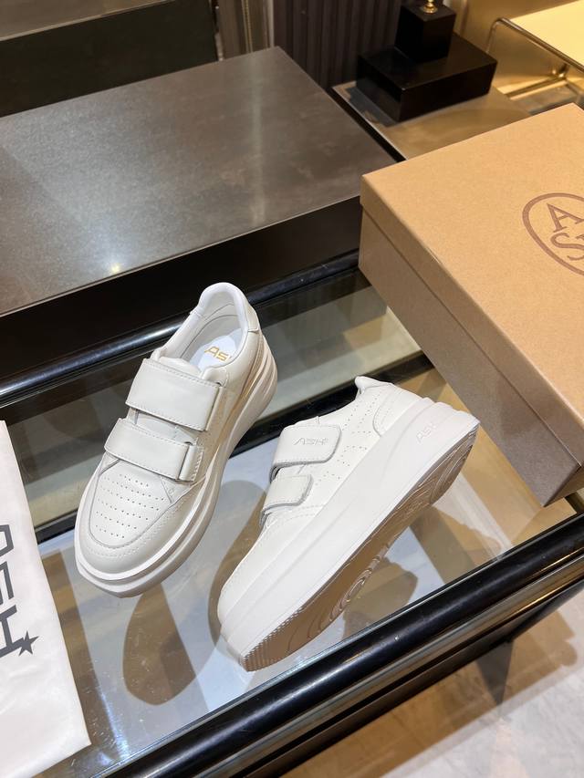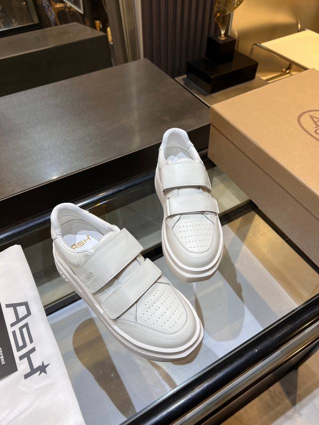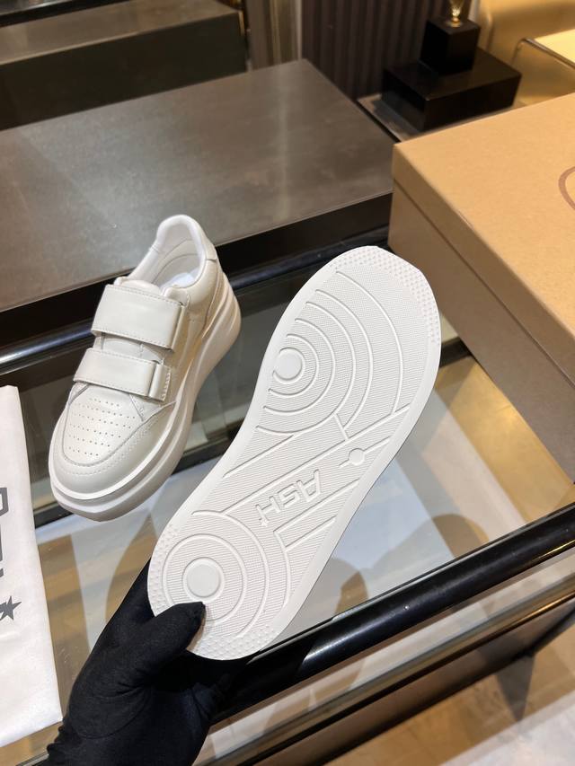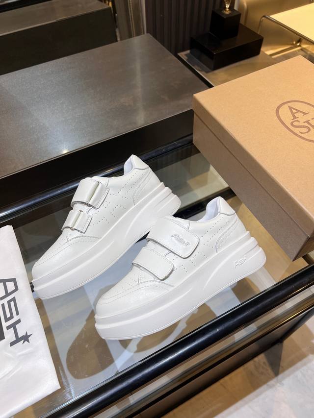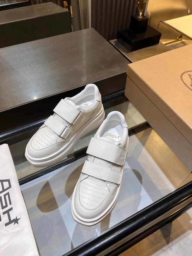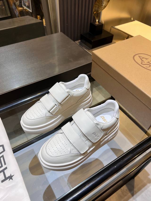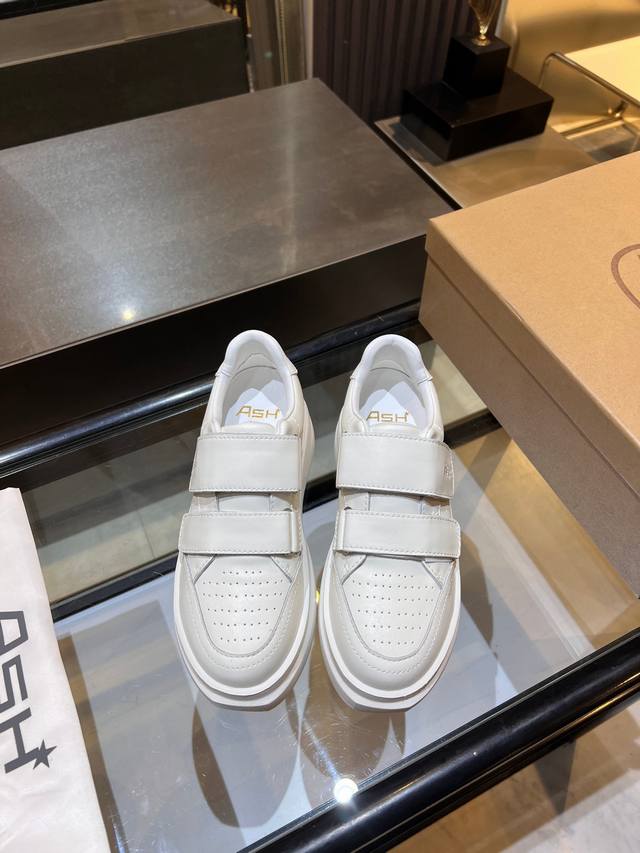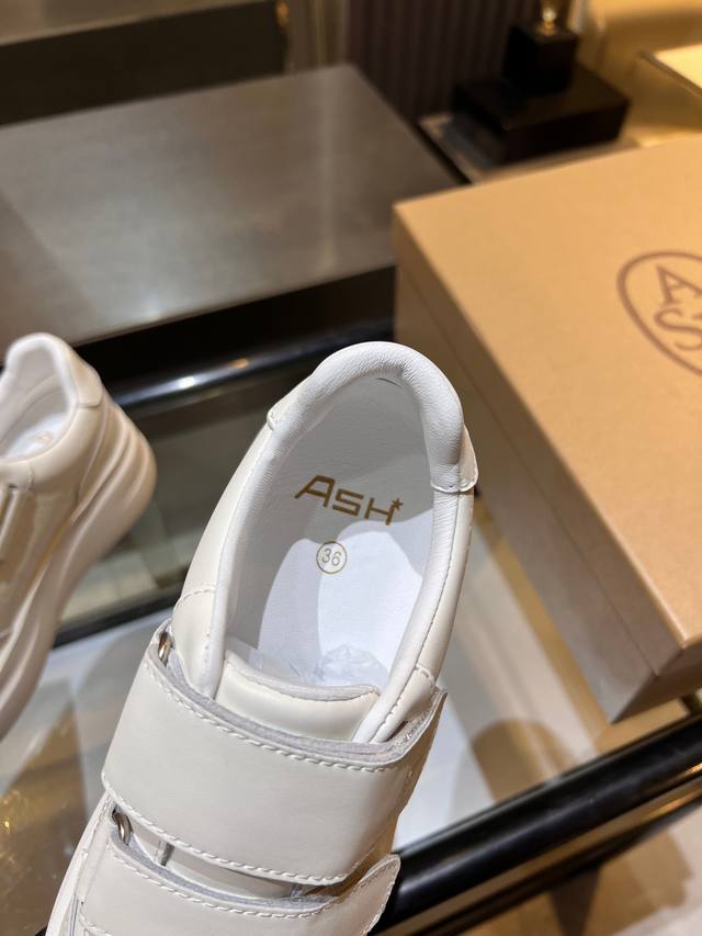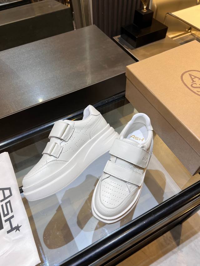 / 上新Ash 款号029 3 秋季明星同款 休闲系列,简约设计的冲孔透气鞋身,搭配轻盈回弹增高鞋底。 面料:头层牛皮+羊皮 鞋底:橡胶发泡大底 内里:羊皮 码数: