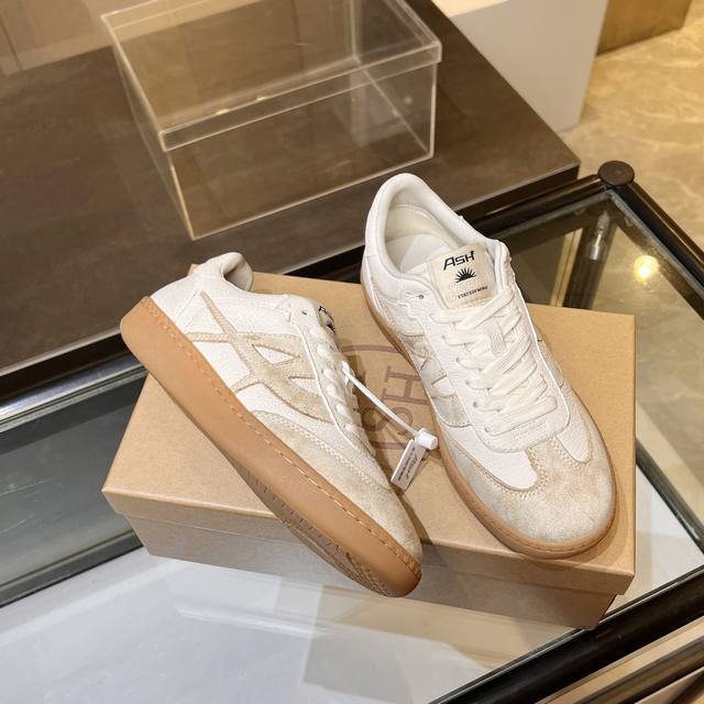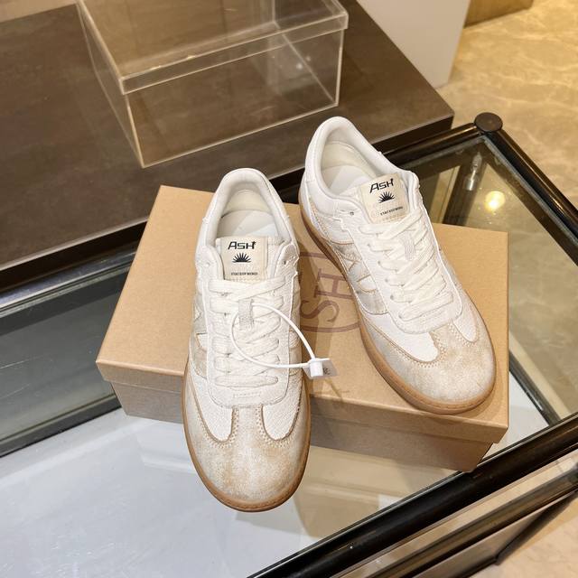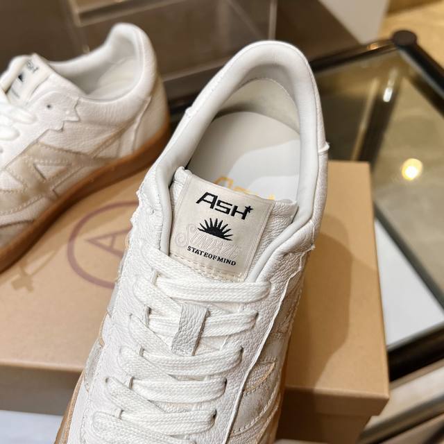 上新Ash 款号032 明星同款 休闲系列,简约设计的透气鞋身,搭配轻盈回弹增高鞋底。 面料:头层牛皮+羊皮 鞋底:橡胶大底 底高3Cm 内里:羊皮 码数:35