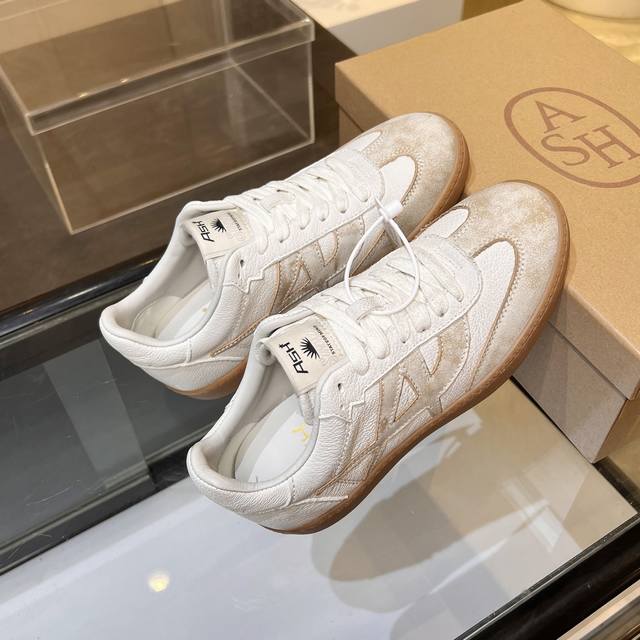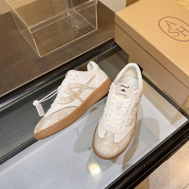 / 上新Ash 款号032 明星同款 休闲系列,简约设计的透气鞋身,搭配轻盈回弹增高鞋底。 面料:头层牛皮+羊皮 鞋底:橡胶大底 底高3Cm 内里:羊皮 码数:35