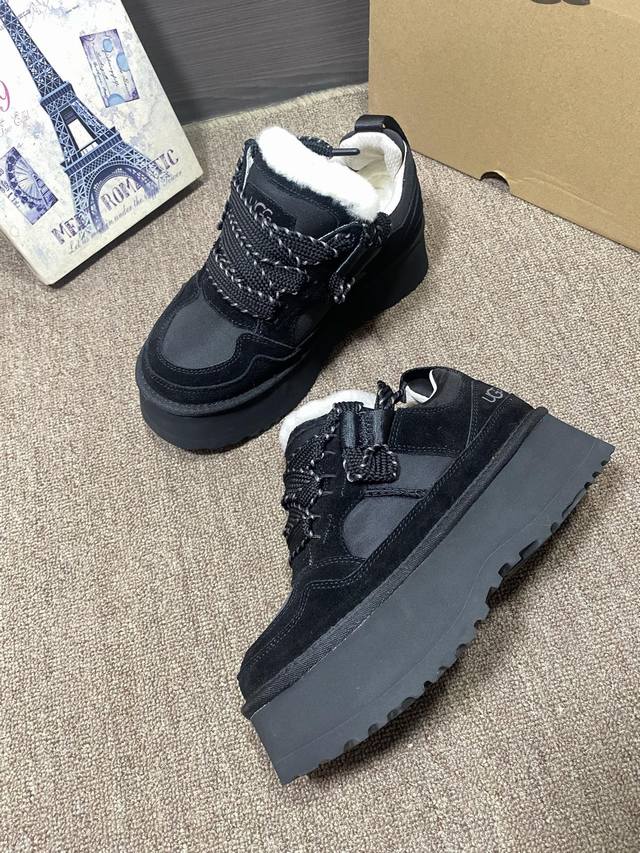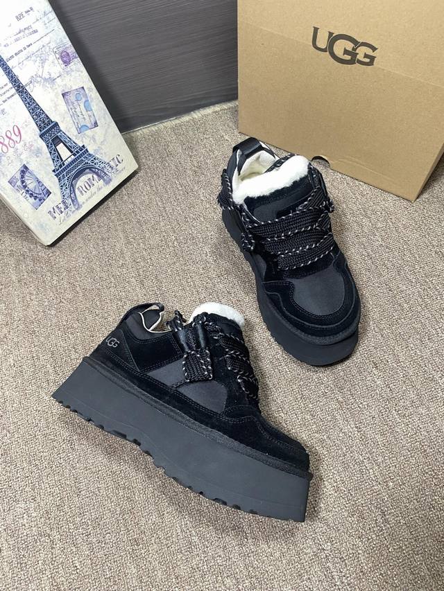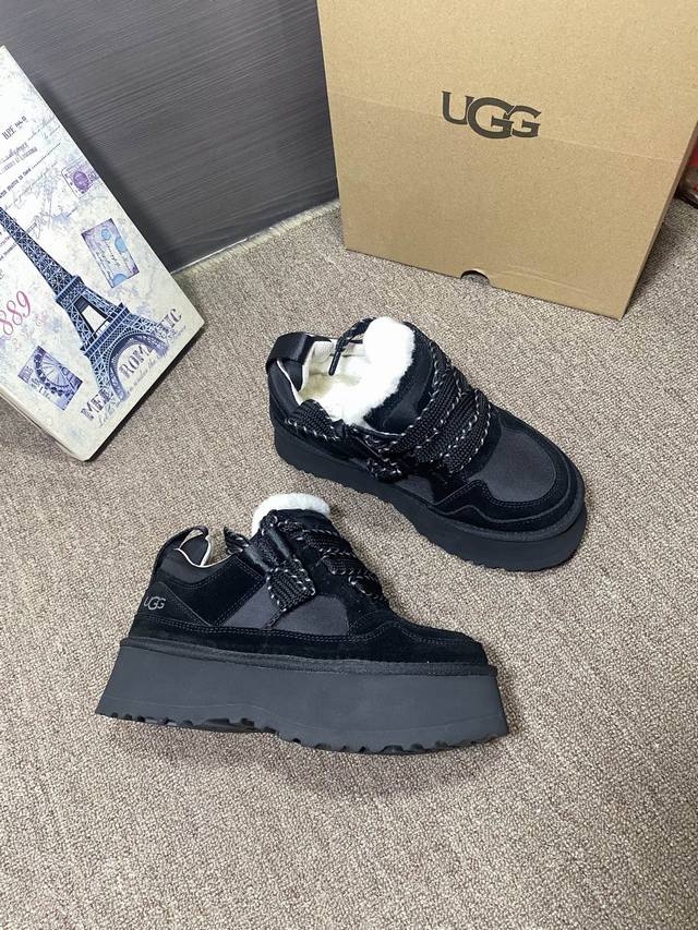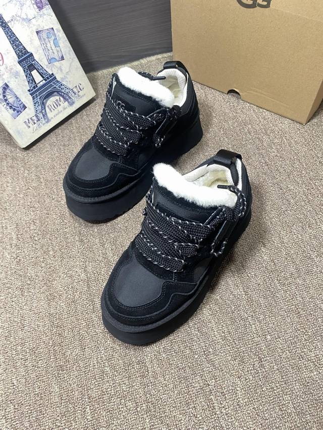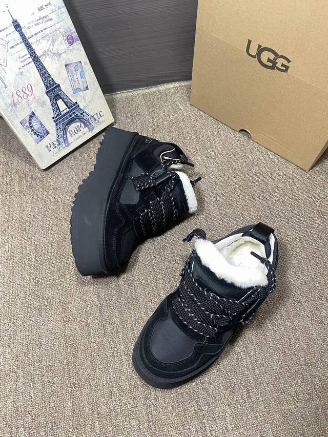 上新Ugg梅尔 休闲,官网同步 颜色:栗色,黑色,薰衣草暗紫色,茉莉白色 牛皮反绒羊皮毛内里垫脚 5厘米Eva加厚贴片大底 系带,拼色,休闲 35~40,可订4