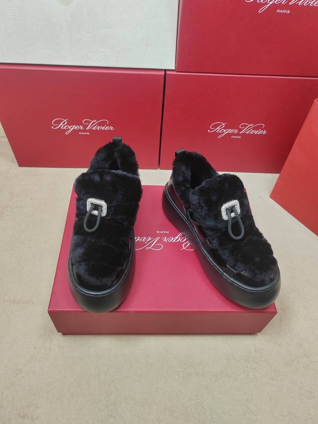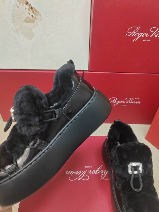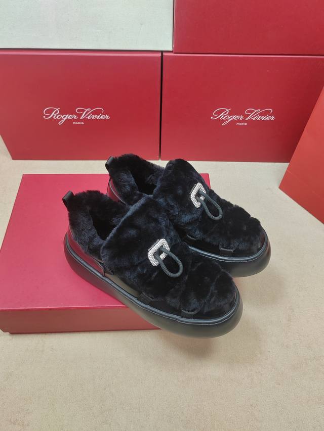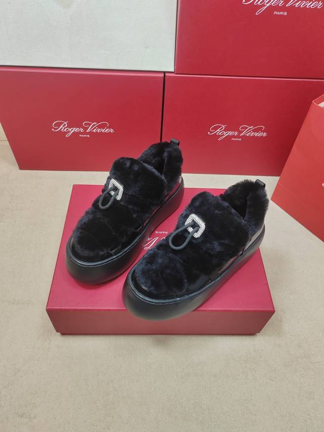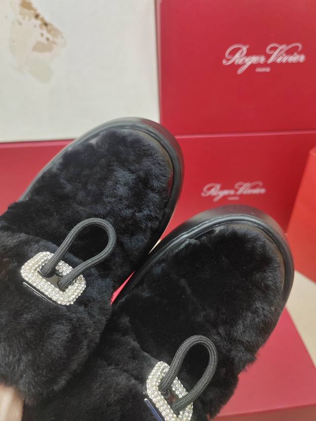 / 专柜新款钻扣小白鞋毛毛鞋上新 鞋面:原版定制羊毛配原版开模K9钻饰 内里:真羊毛里 大底:原版开模定制Ip发泡防滑大底 跟高:5Cm 鞋码: 35-39 34.