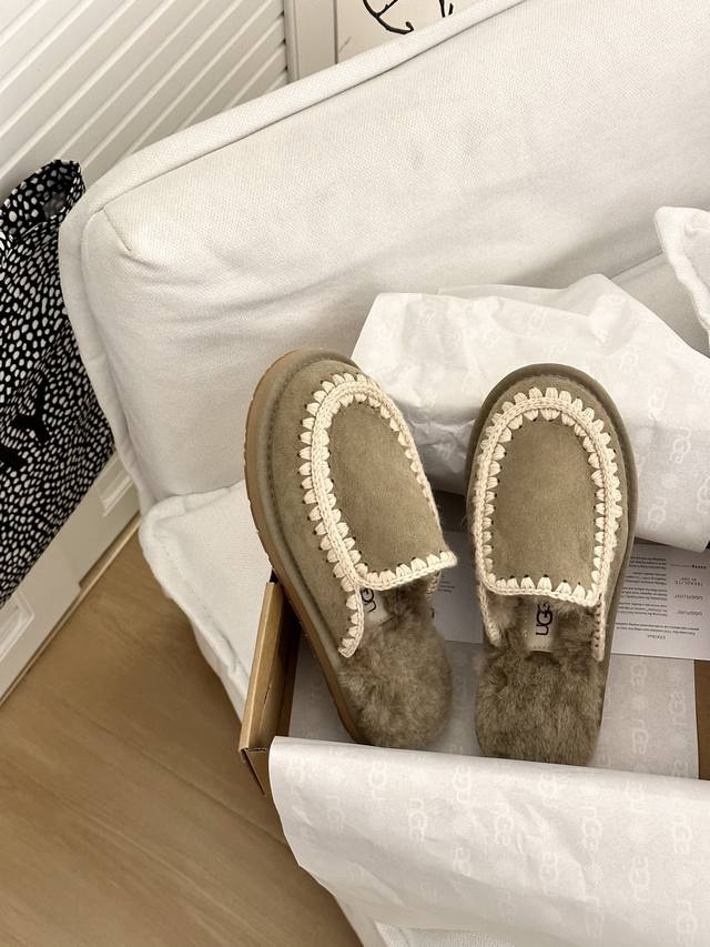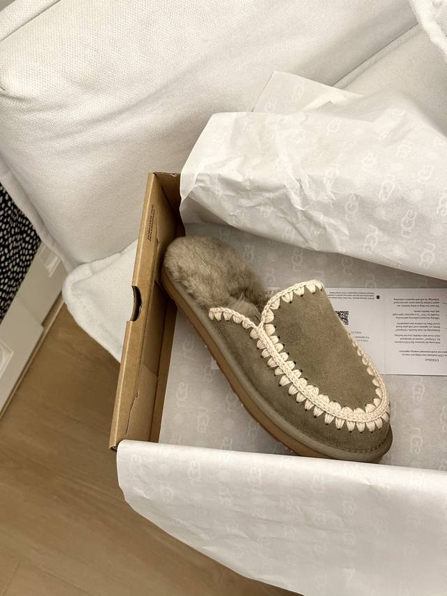 专柜秋冬新款,手工编织毛线羊毛拖 A级羊皮毛一体 功能性与配搭格调兼备 柔软轻翼高弹大底 Size: 35-40