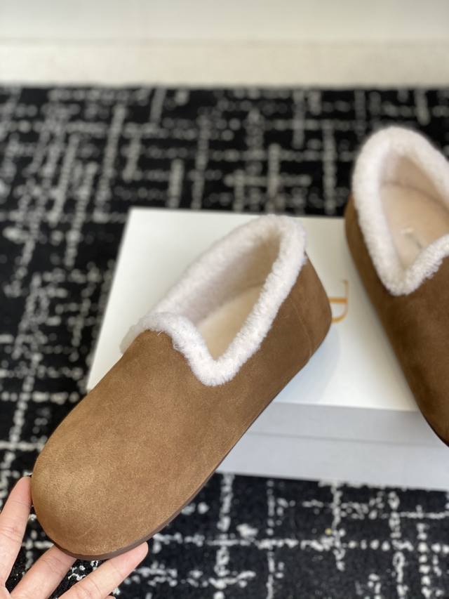 东莞代购级 DDD Therow新款羊毛包子鞋 乐福鞋 DDD 简直就是本年度最美丽的女鞋嘛,一穿上就散发出法式优雅的气质,高级又时髦,简直是可盐可甜,文艺范儿十足,气质爆棚! DDD 好看又好穿,简直就是风魔全球的经典之作,特别是那柔软细腻的鳄鱼纹牛反毛皮面料,让这款芭蕾舞鞋立马变得与众不同,质感超级棒! DDD 鞋头的设计简直是完美无缺,弧度恰到好处,柔软而有弹性,整体看起来既大气又不失时尚感,简约的鞋面设计巧妙地融入了时髦元素,带条设计更是贴心至极,无论你是宽脚、胖脚还是瘦脚都能轻松穿出美感。 DD
