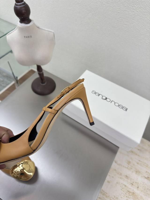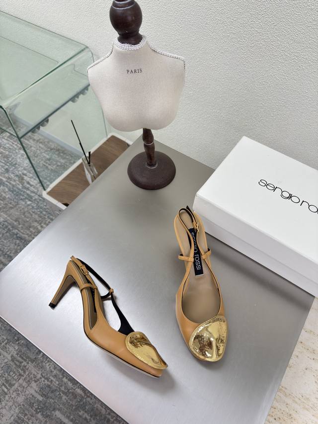 中跟后空 金扣 Sergio Rossi 塞乔罗西