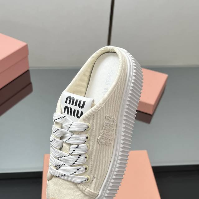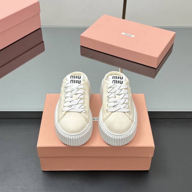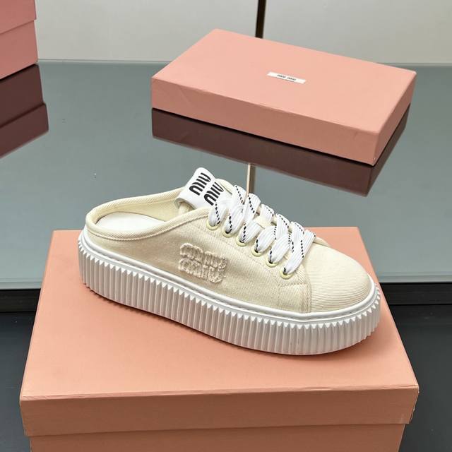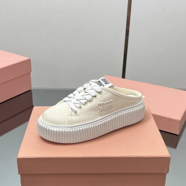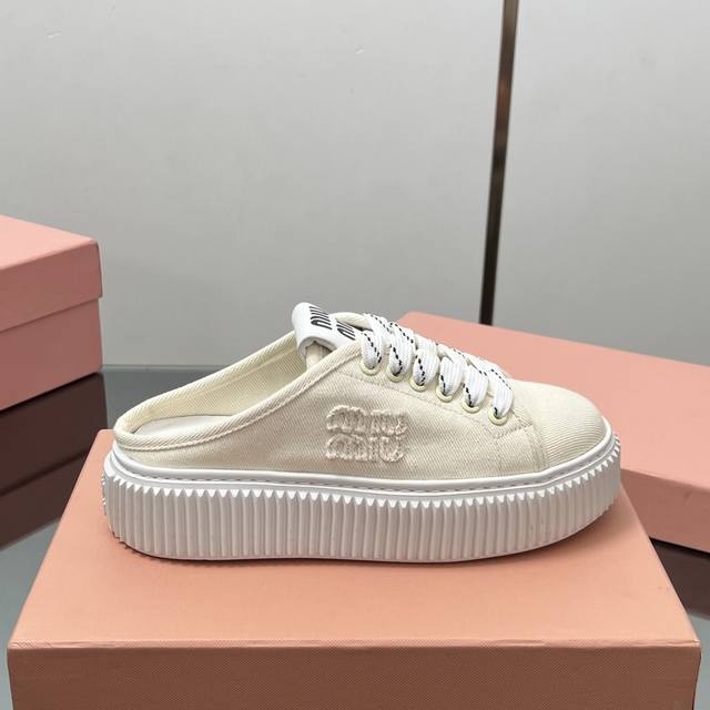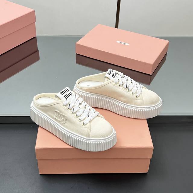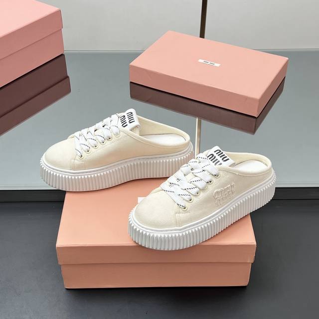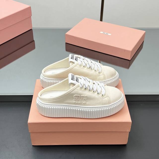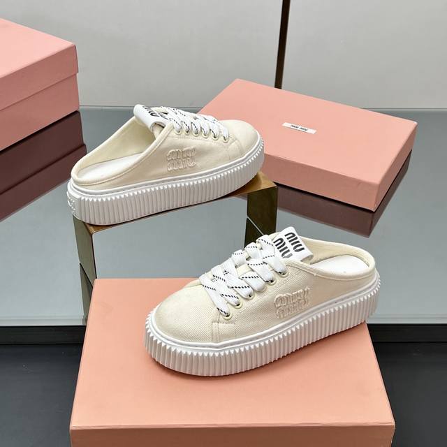 2025Ss Miumiu缪缪 厚底 松松底半拖,帆布鞋