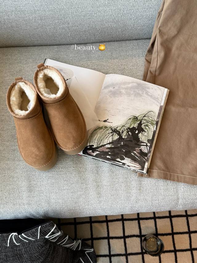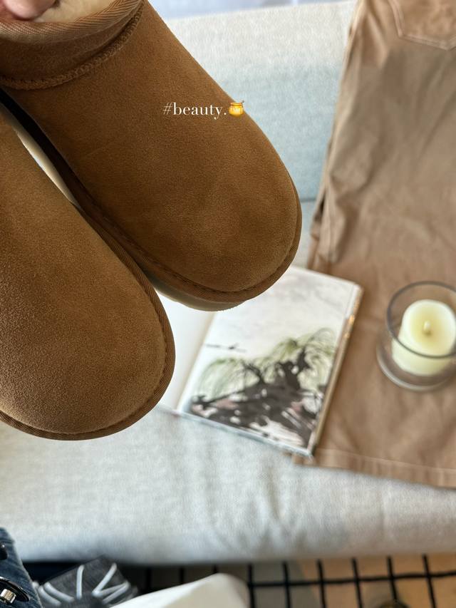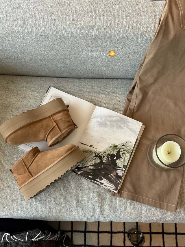 五厘米,秋冬氛围感,被这双浅棕色雪地靴拿捏住啦~绒面质感高级,内里暖乎乎像裹着云朵,搭配裙装、裤装都很绝,踩上它,从脚暖到心,轻松开启温暖又时髦的季节~栗色35