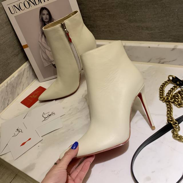 代*级* 米白牛皮靴 经典短靴升级版 定做不退不换 经得力版师三个月精细调试,终于做出与正品一模一样的头型以及版型线条区别一般小厂的粗制滥造做法,细节决定品质! 原版1:1调试楦型,完美修长,线条感十足, 配高档礼盒包装,高端大气,更显尊贵...... 材质 采用进口小牛皮 原版开模合金钢鞋跟大小与原版一致 内里采用意大利进口混种羊皮内里 原版意大利进口Ar1顶级真皮大底 码数:34-42 颜色:黑色 .灰色. 米白. 棕色. 跟高:10Cm. 8.5Cm
