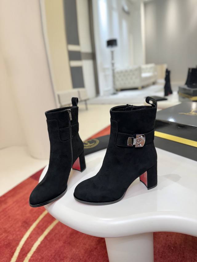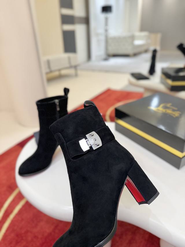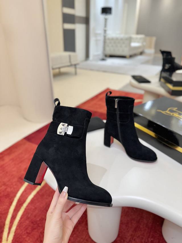 代*级* Lock Booty靴子装饰着带子,带子上装饰着标志性的字母组合扣锁,暗示了设计师的埃及灵感。这款靴子采用70毫米的高跟鞋,由黑色小牛皮皮革制成。都市风格的特点是圆形的脚趾和鞋跟标签,装饰着Maison Christian Louboutin的标志性钉子。 码数:35-42 40.41.42.定做不退不换 颜色:黑牛皮 黑羊京 其他颜色均为定做不退不换 跟高:7Cm