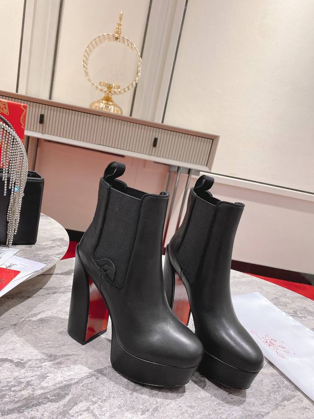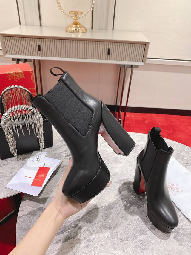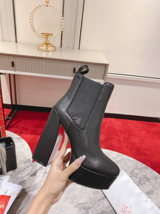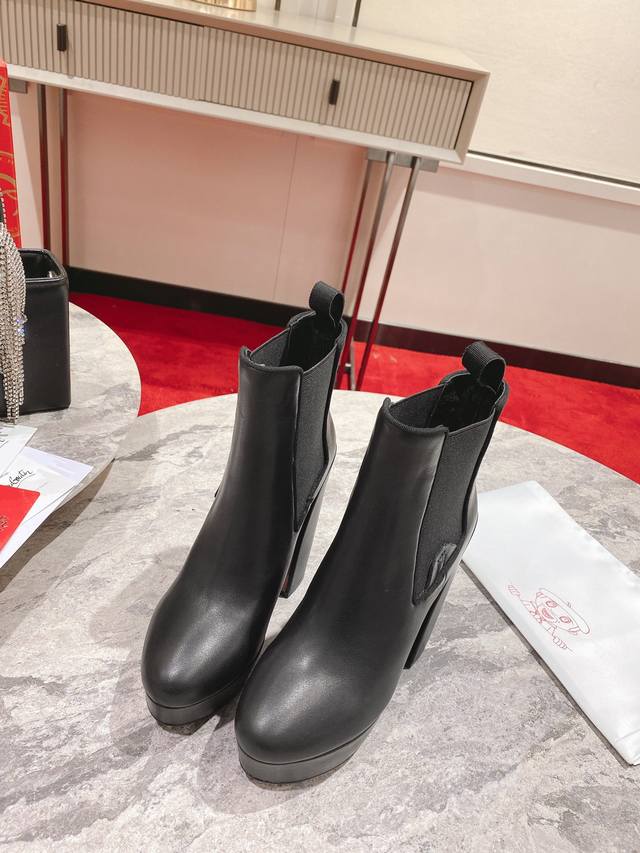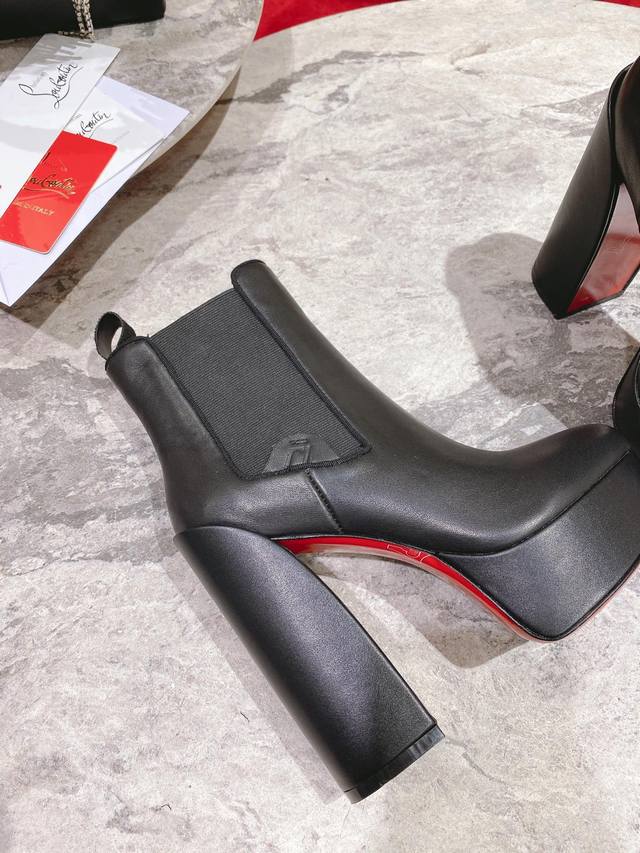 代*级* Movidastic是一款精致廓形的踝靴,配有130毫米厚的角形鞋跟。这款腕表采用黑色小牛皮打造,彰显了Maison Christian Louboutin的专业技术,简洁的线条。有一个弯曲的脚趾,它的特点是在一侧的弹性插入,增强与浮雕Cl Varsity标志。 材质 进口小牛皮 内里垫脚全羊皮,意大利真皮大底 码数:35-42 40.41.42.订做,不退不换 颜色:黑色 跟高:13Cm