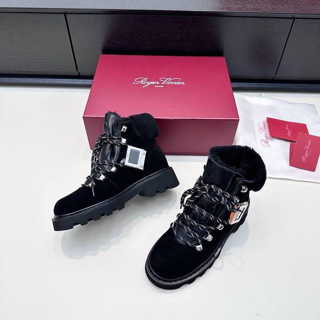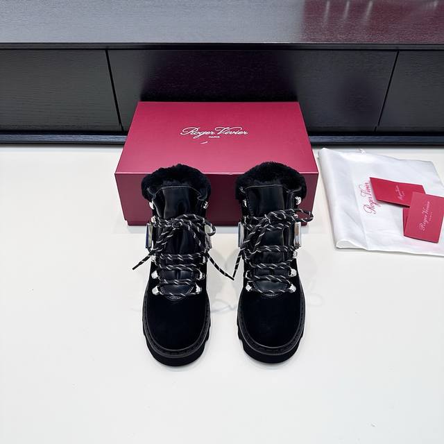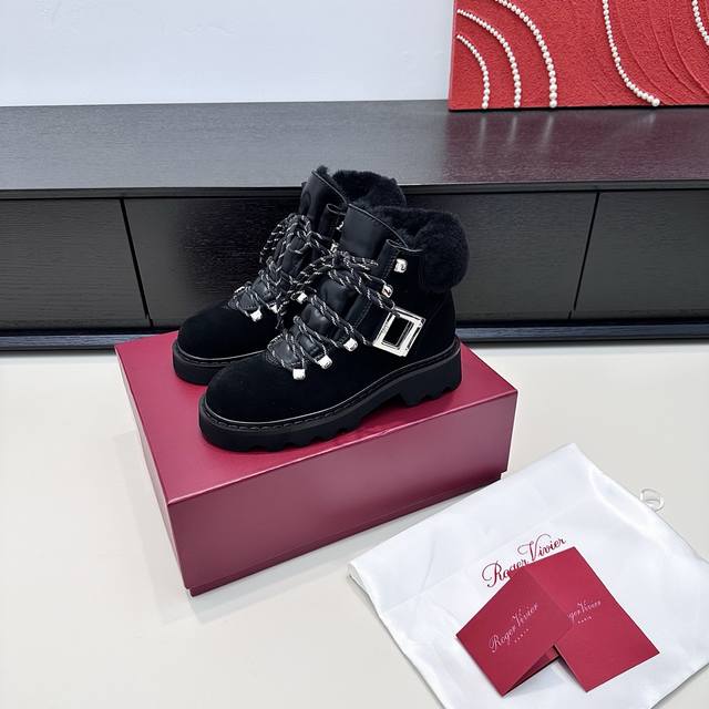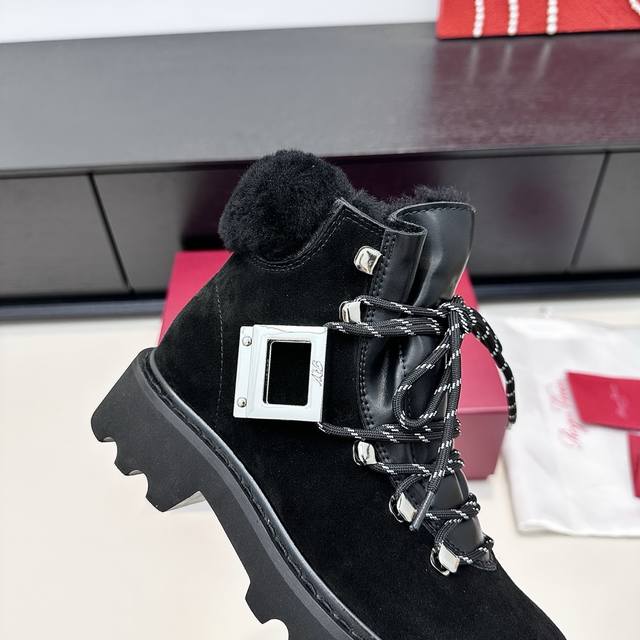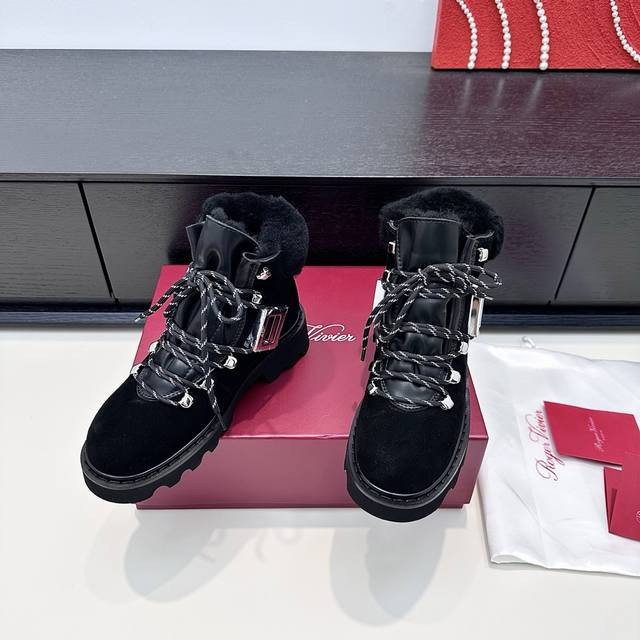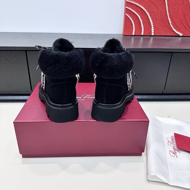 代购版 Rv 25年冬季新款 Vivi'rangers Truck系列 金属扣羊毛裸靴子 保暖马丁靴 当凛冽寒风遇上Roger Vivier的冬日浪漫,这双雪地