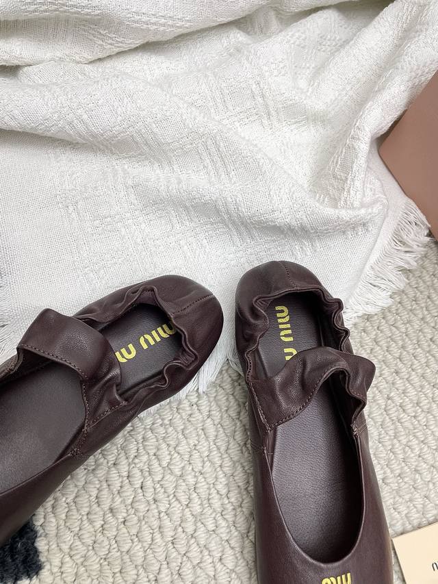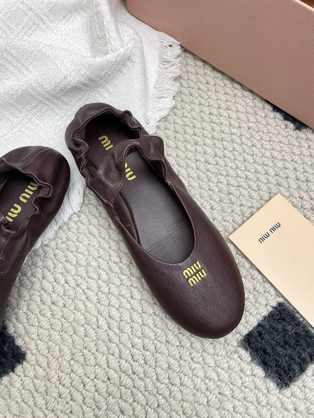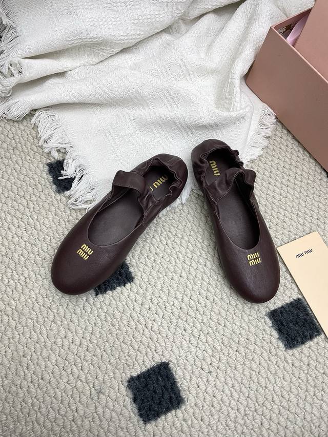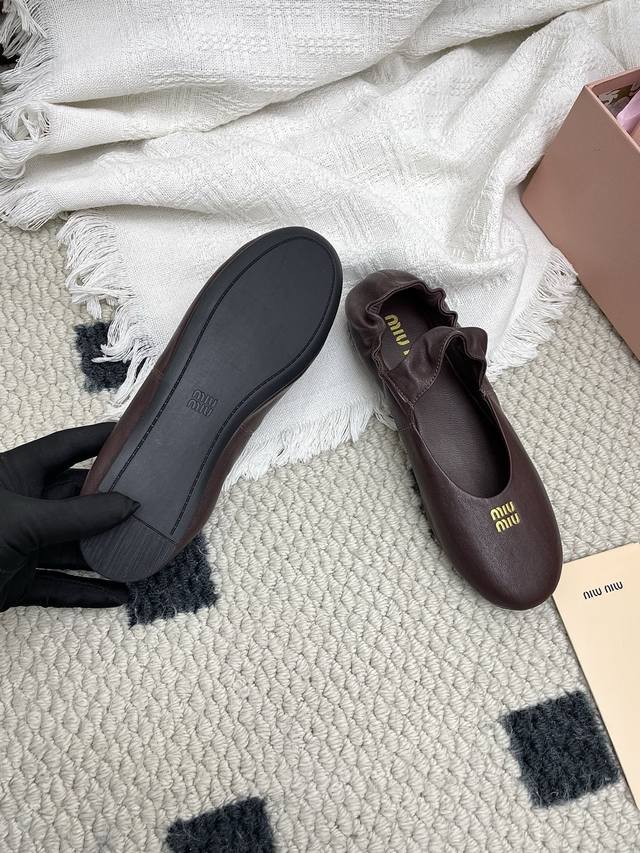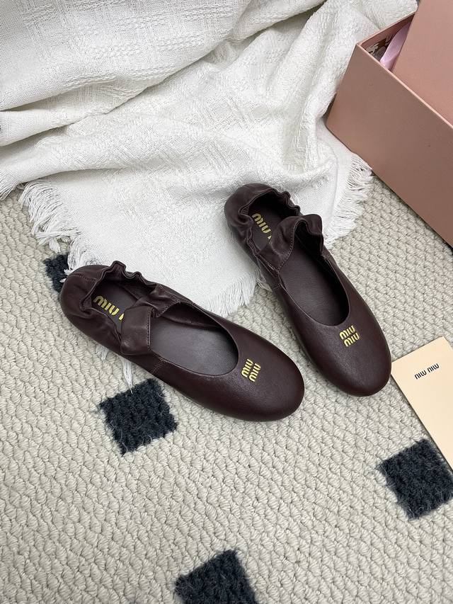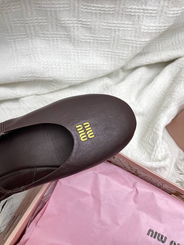 / 代购级别2025春夏时装周Miu Miu谬谬新出松紧芭蕾舞 鞋真的让人一整个心都融化除了中间夹着一颗钱币这种细节之外、鞋型整体都狠秀气不笨重、圆头 鞋面:进口羊
