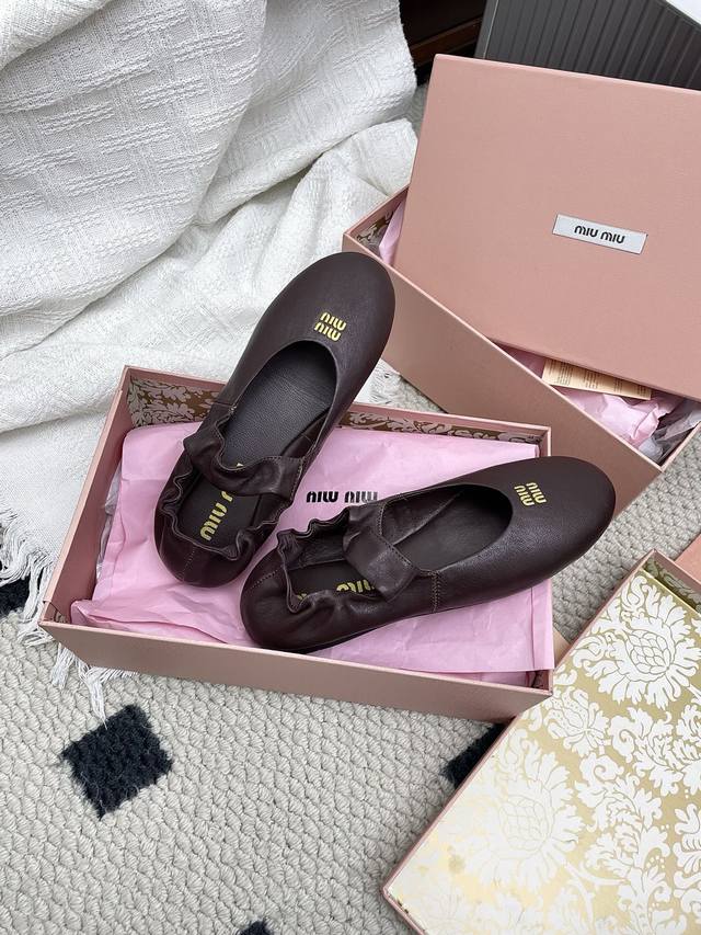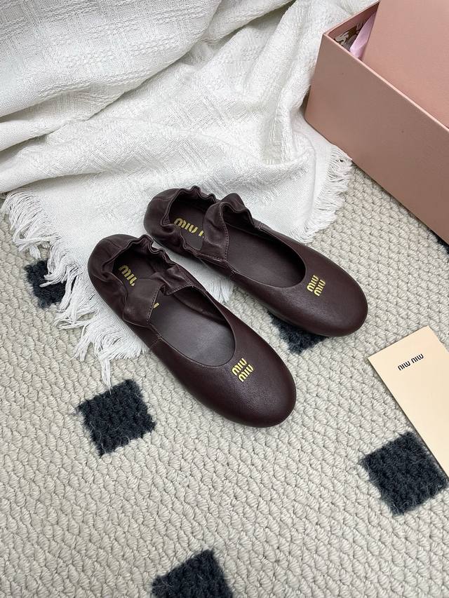 代购级别2025春夏时装周Miu Miu谬谬新出松紧芭蕾舞 DDD 鞋真的让人一整个心都融化除了中间夹着一颗钱币这种细节之外、鞋型整体都狠秀气不笨重、圆头 DDD 鞋面:进口羊皮 DDD 内里:进口羊皮 DDD 大底:原版鞋底 DDD 码数:35~39 40.41订做不退不换 DDD