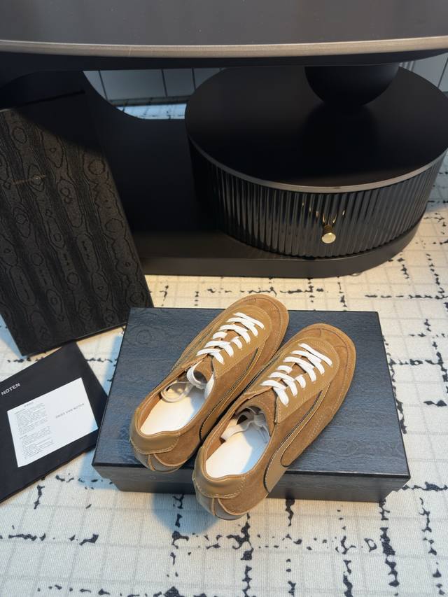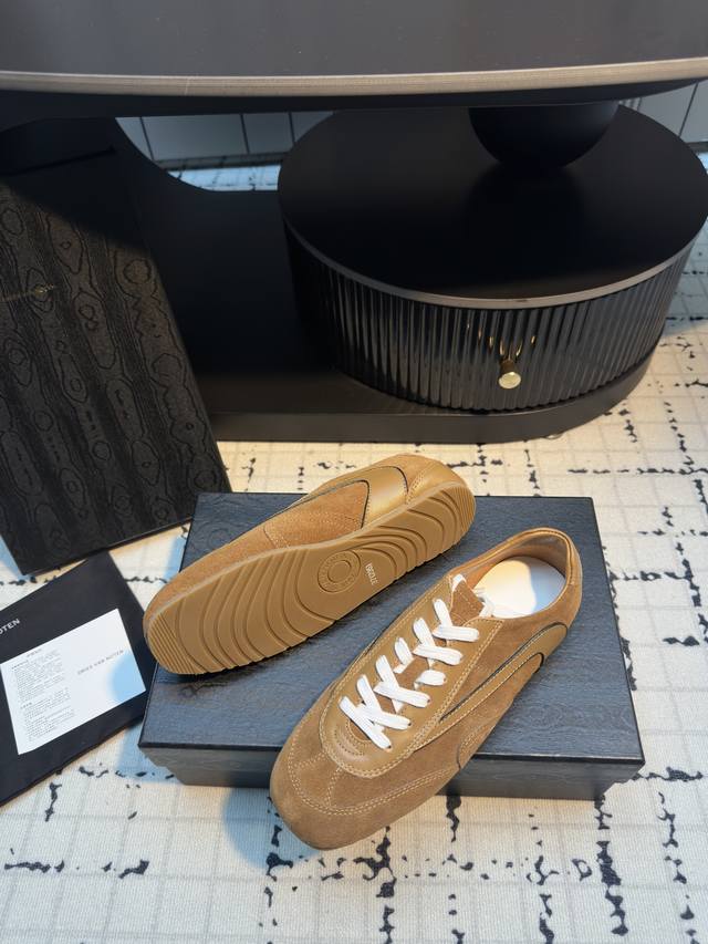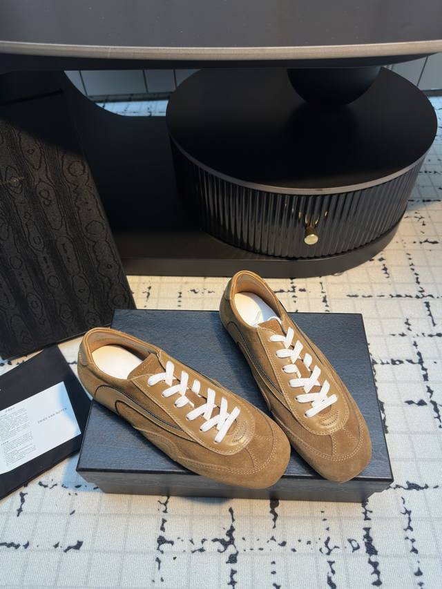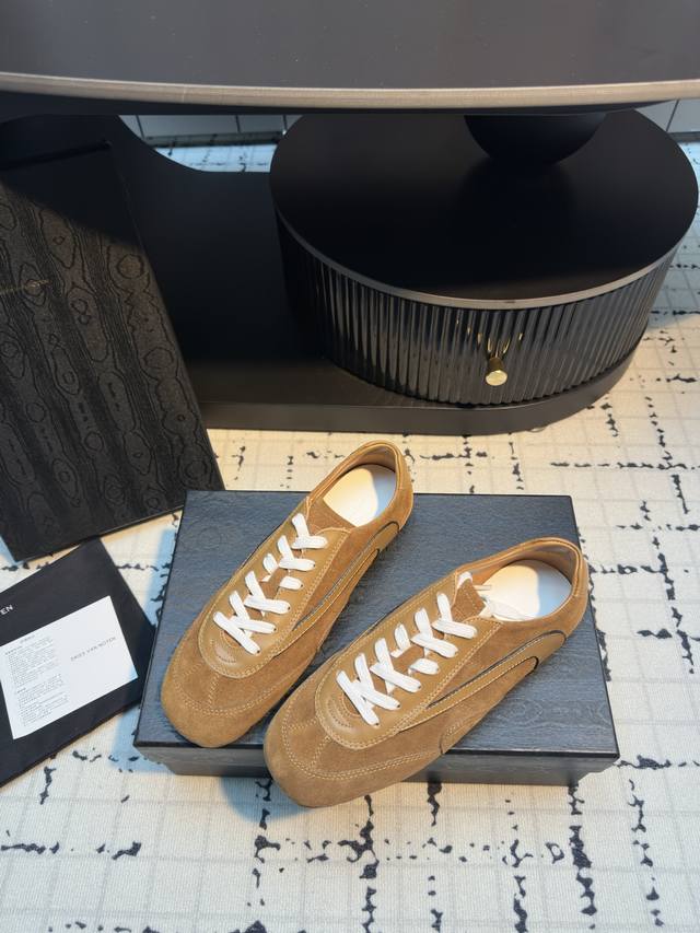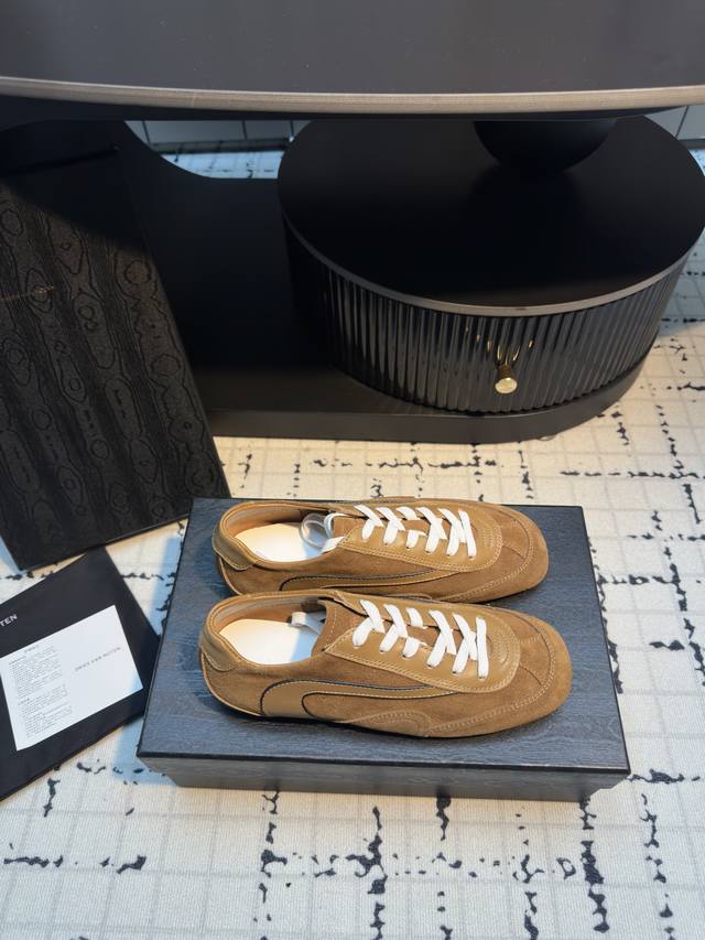 代购级小众 Dries Van Noten Dvn 复古德训鞋 DDD Dvn的德训鞋也太美了吧 Dries 总会给我带来惊喜 DDD Dries Van Noten 2025春夏系列,设计师通过改造、扭曲和颠覆经典元素,打造出实用而富有设计感实穿的运动鞋履。 DDD 新一季的麂皮运动鞋,灵感来源于70年代的马拉松竞技运动。鞋型以马拉松运动鞋为设计原型,搭配极具生命力色彩的绿色、红色、橙色等 Dvn代表性的色彩,鞋面由麂皮、柔软牛皮等材质拼接而成,并搭配今年流行的尼龙扭绳鞋带,实用性与时尚性得到完美的平衡