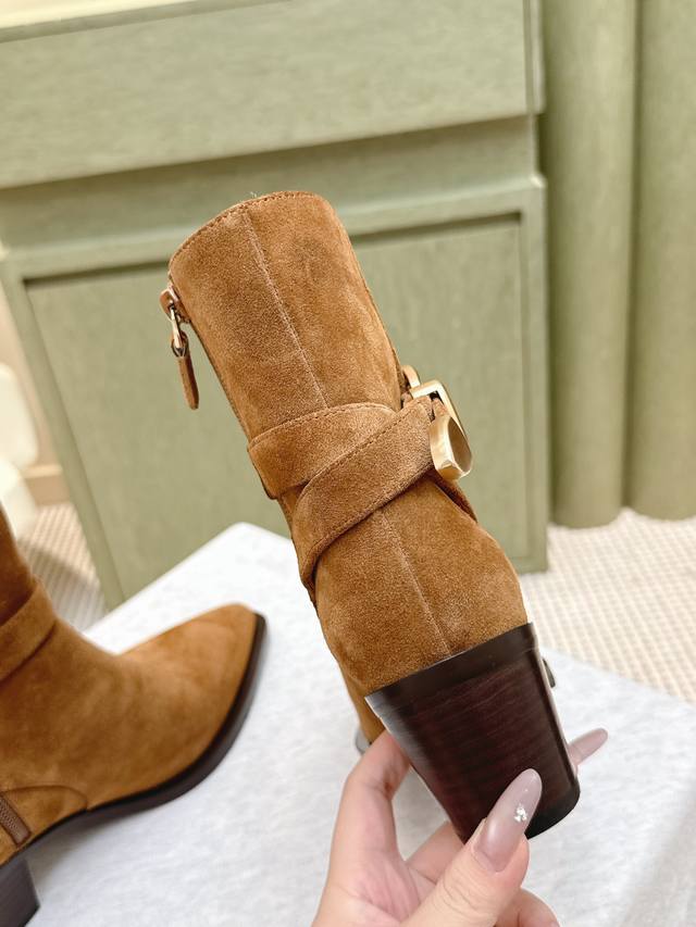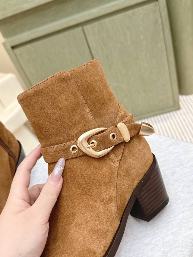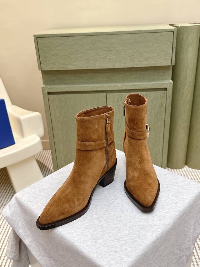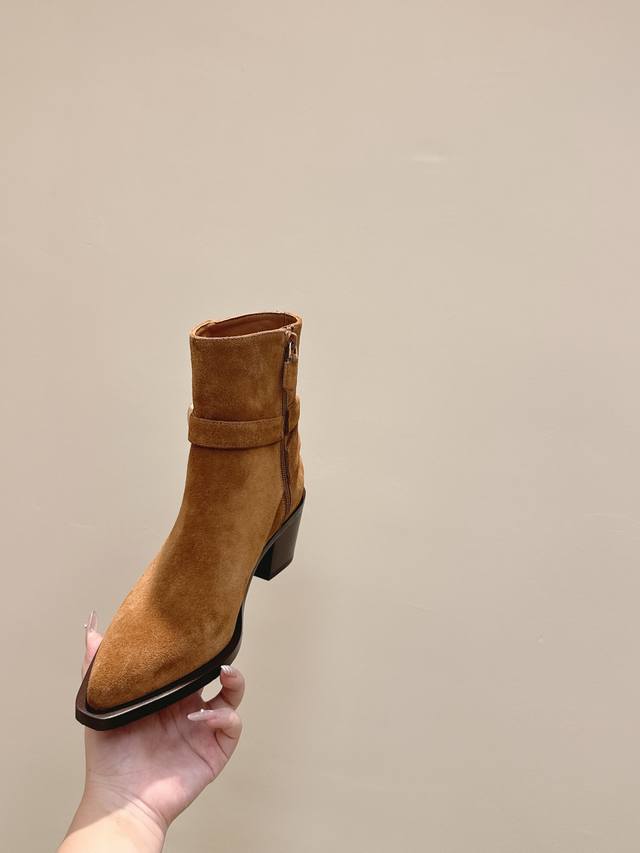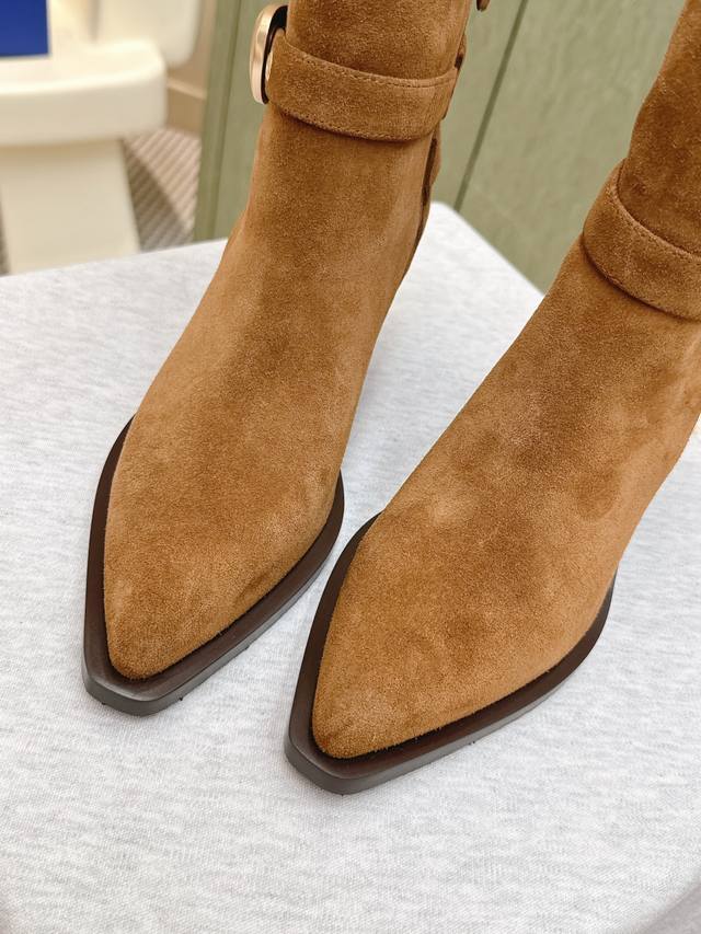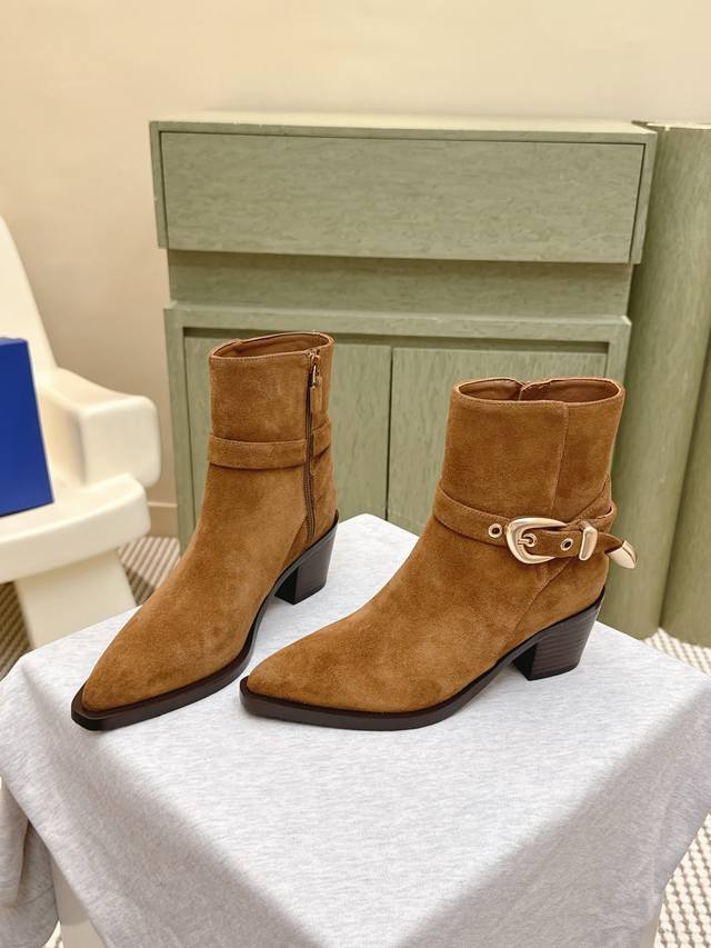代购级牛反绒 小牛皮 |D0751Stuartweitzman Fw 25New Arrival~杨紫大姐姐同款 尖头 高跟短靴 Sw新款厚底马丁靴百搭实穿,可