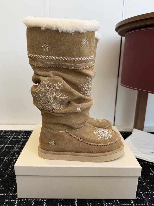 代购级短款460 长款 雪地靴 主推款 易搭配 Unfolio精品 高丝光牛反绒皮面 流苏设计 几万针刺绣雪花 图案 内里羊毛 小众设计师25发布会新款 面料选