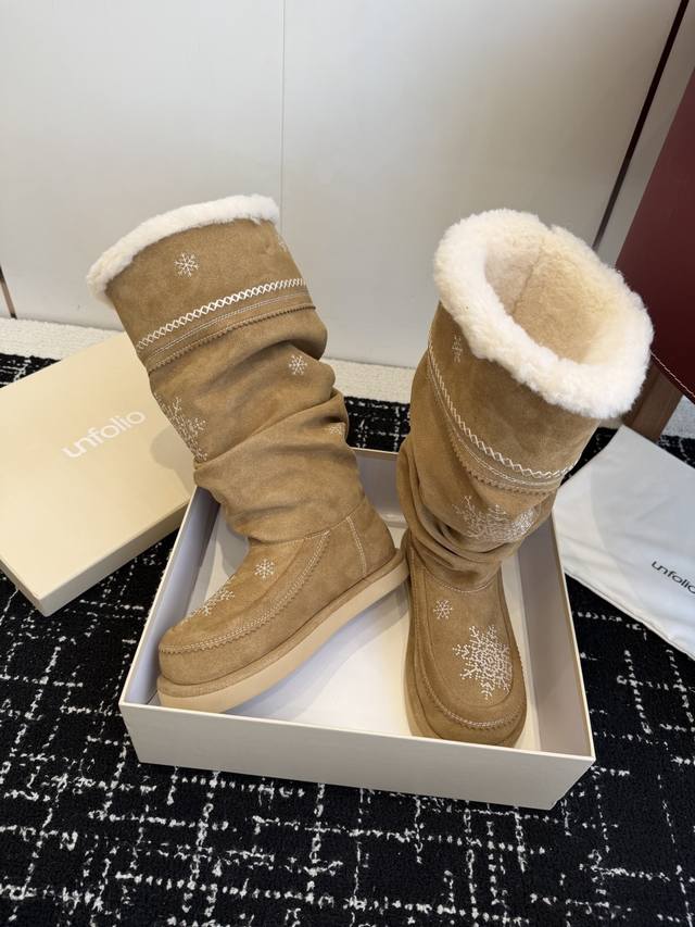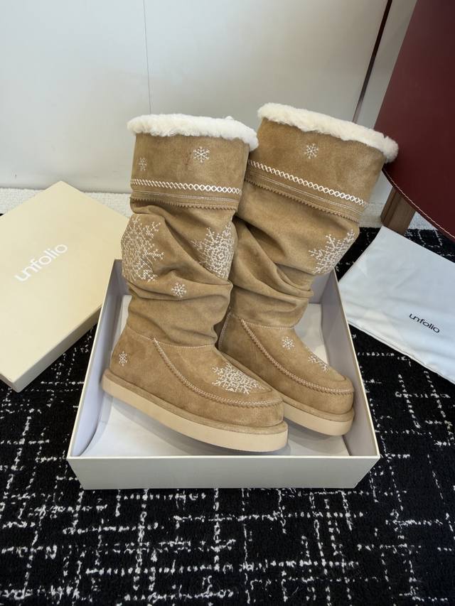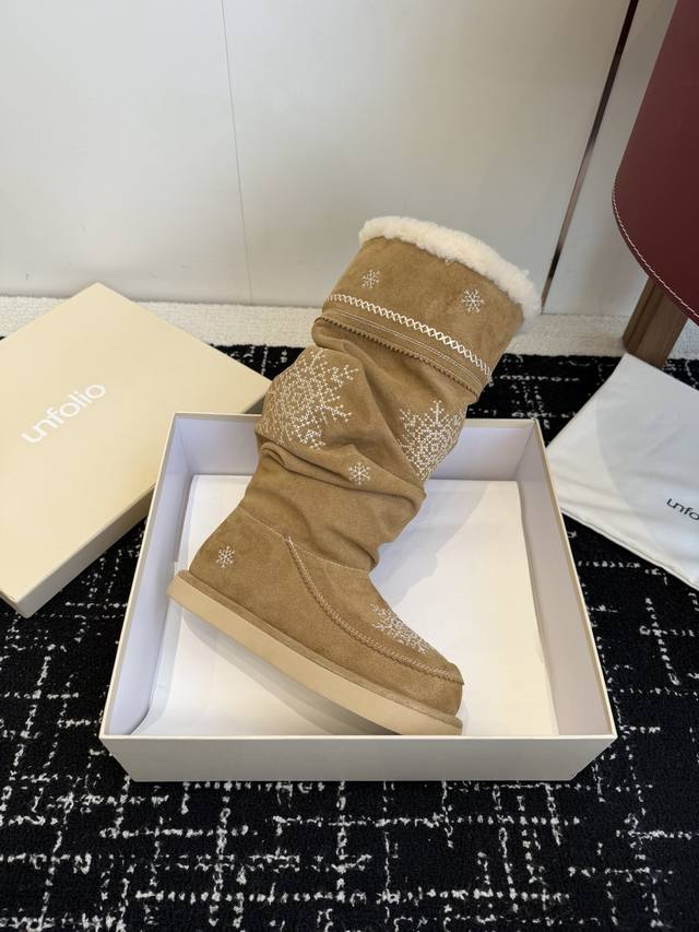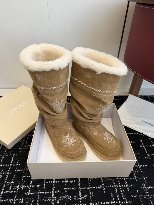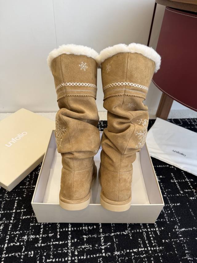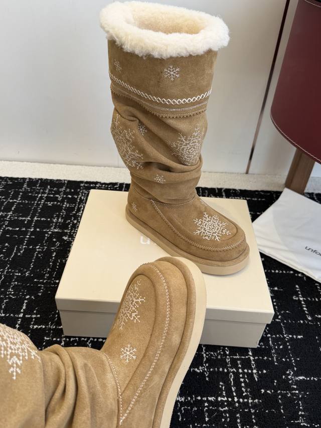 / 代购级短款460 长款 雪地靴 主推款 易搭配 Unfolio精品 高丝光牛反绒皮面 流苏设计 几万针刺绣雪花 图案 内里羊毛 小众设计师25发布会新款 面料选