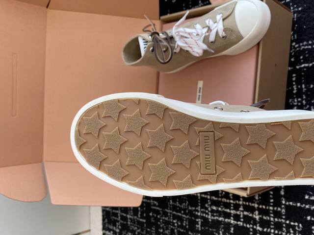 代购级统一 官网同步盒包装 Miumiu缪缪 25Ss 最新款美式复古风 双鞋带 帆布 半拖 中绑 高绑 滑板鞋