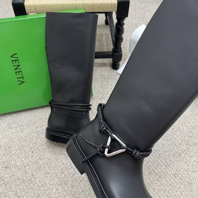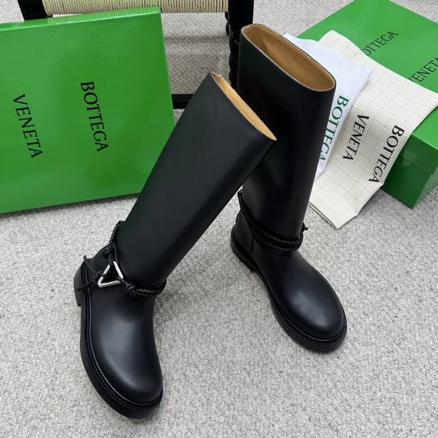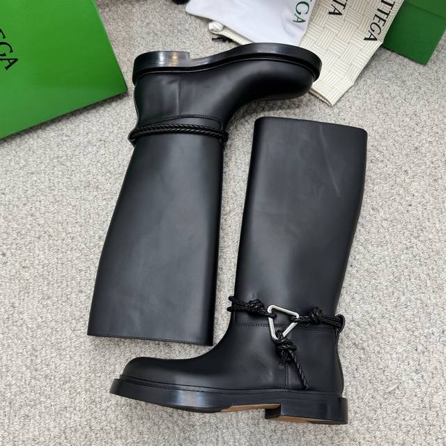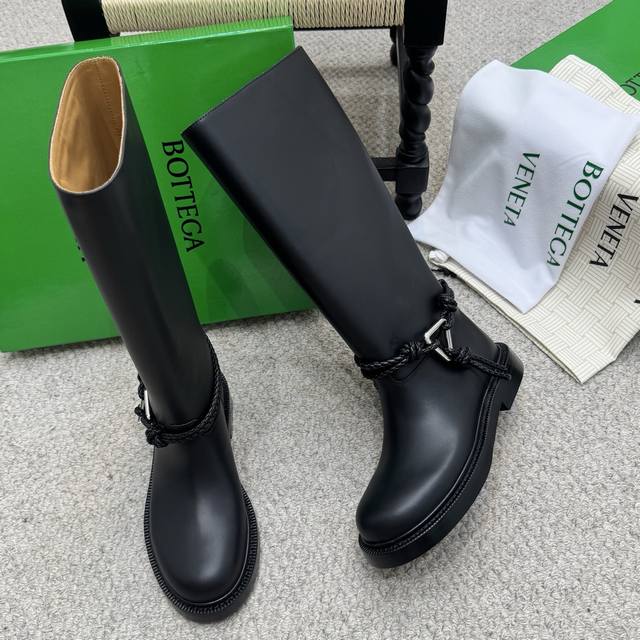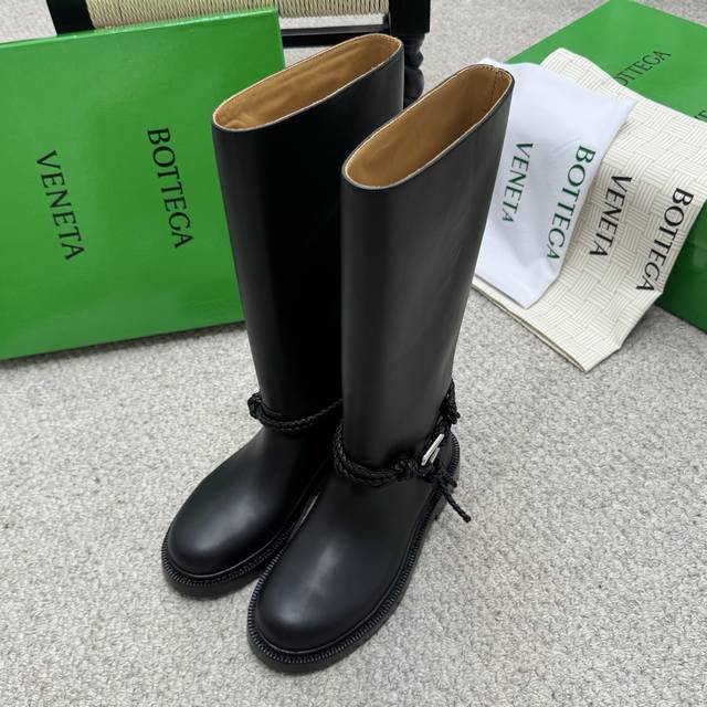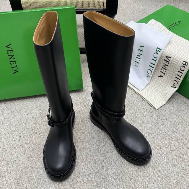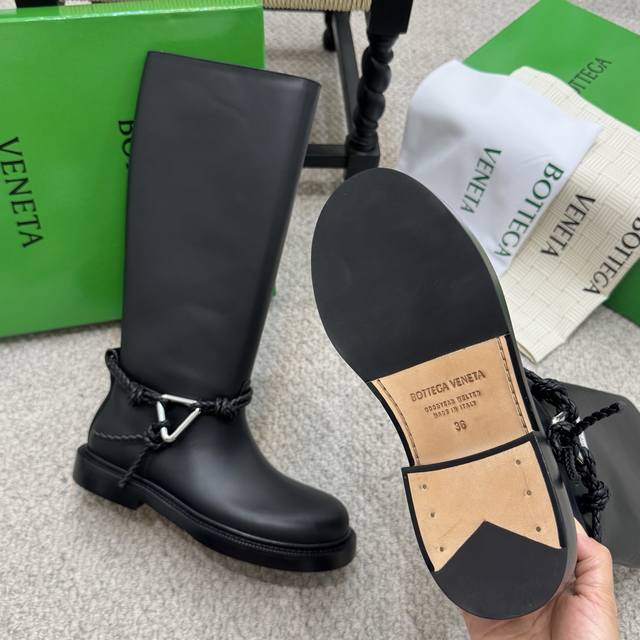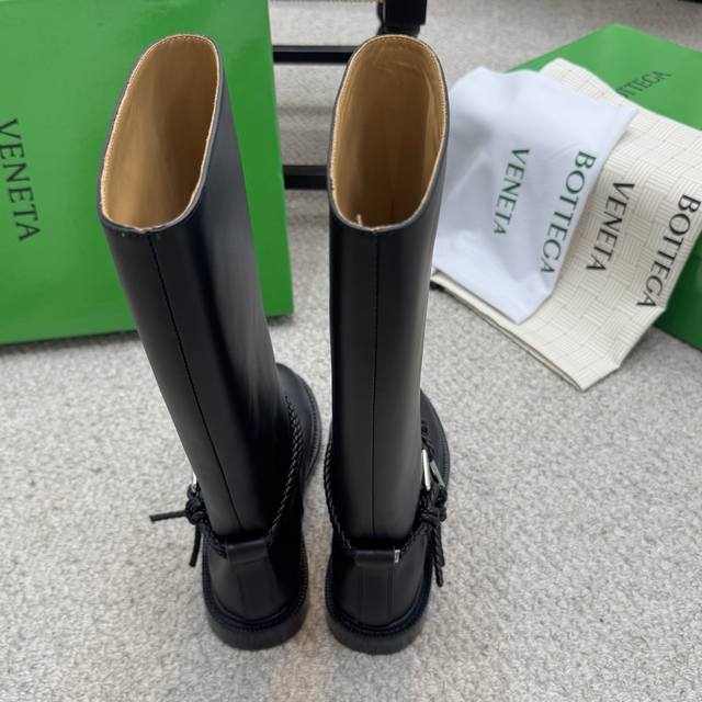 代购级长 短 Bv 2025秋冬最新今年肯定大火的长靴之一 大圆头高筒及膝款骑士靴子 Zp定制Bv原版皮 进口头层植鞣牛皮 棕色水染牛皮内里 Zp级别全新开模Tpu压印U形橡胶真大底.全真皮沿条 筒高:及膝长筒款 配Bv全套正版绿色新版 Size:35-41