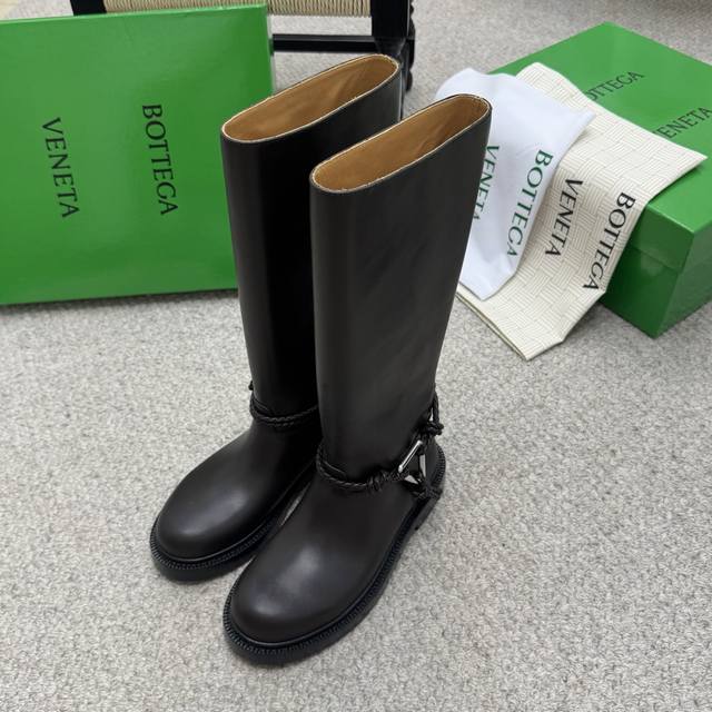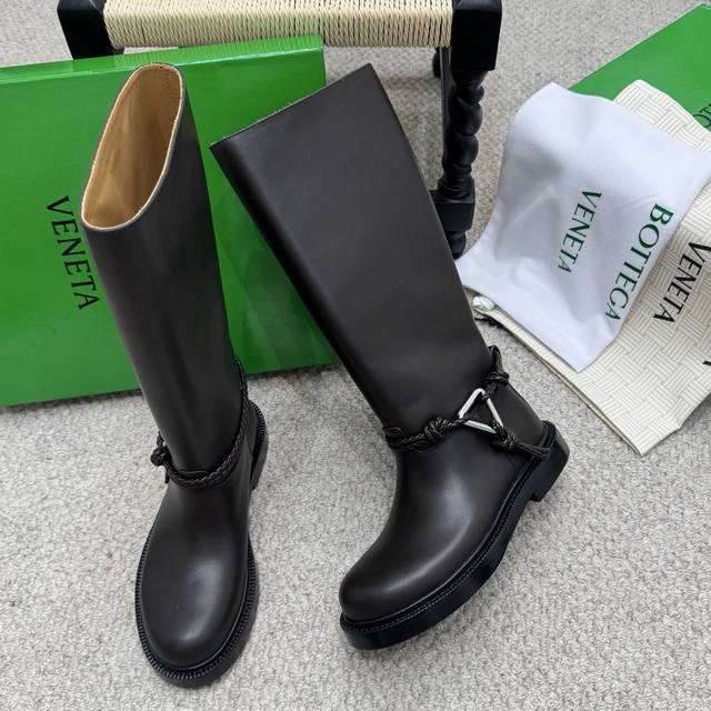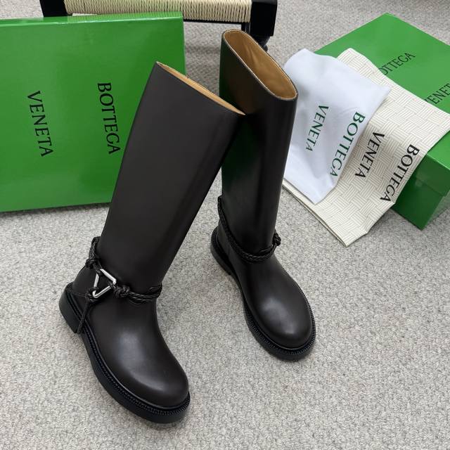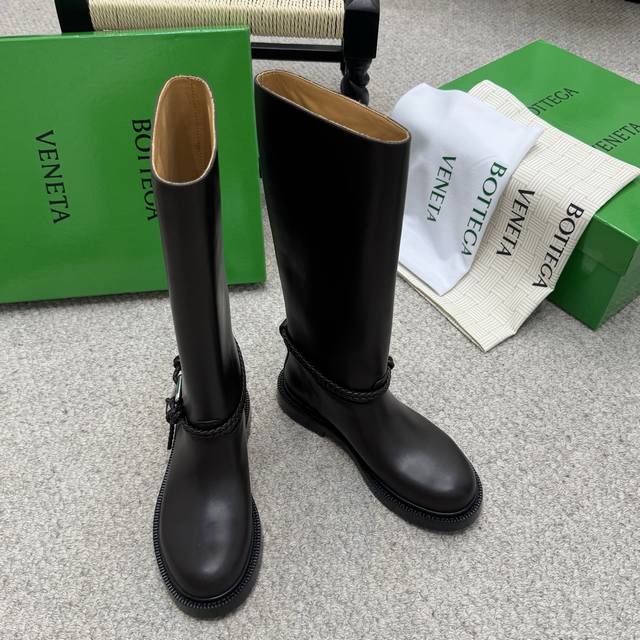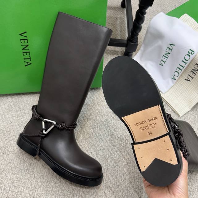 代购级长 短 Bv 2025秋冬最新今年肯定大火的长靴之一 大圆头高筒及膝款骑士靴子 Zp定制Bv原版皮 进口头层植鞣牛皮 棕色水染牛皮内里 Zp级别全新开模Tpu压印U形橡胶真大底.全真皮沿条 筒高:及膝长筒款 配Bv全套正版绿色新版 Size:35-41