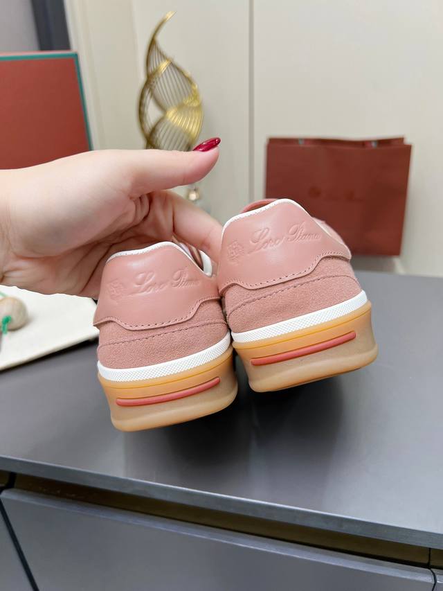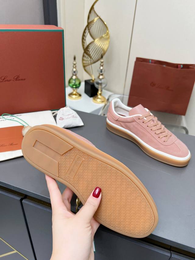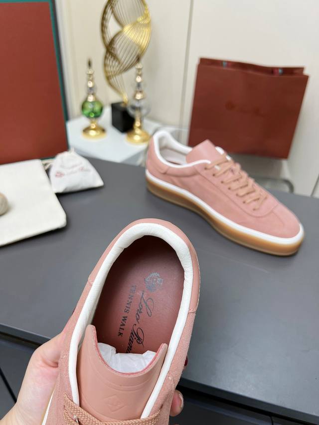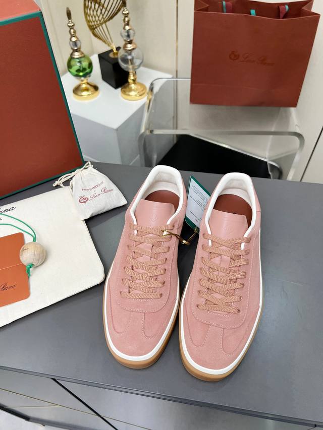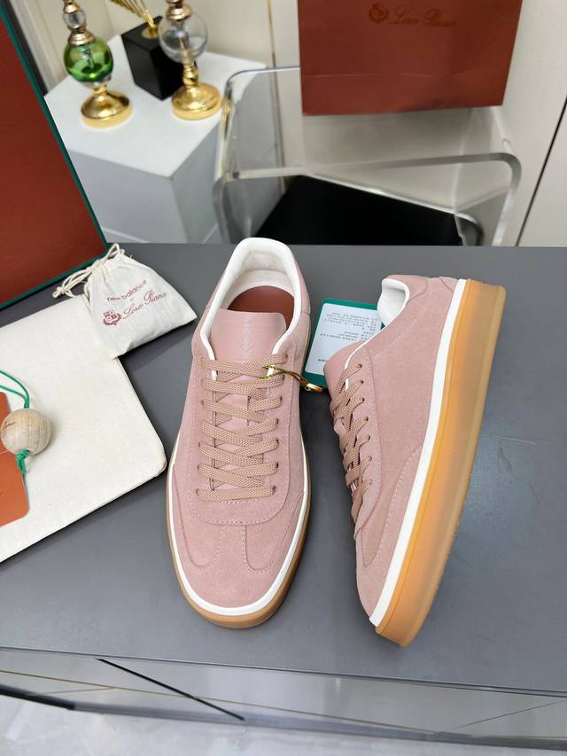 代购级,高版本 意大利 Loro Piana 诺悠翩雅Tennis Walk系列 Lp情侣款德训鞋 休闲 运动鞋 板鞋 原版购入开发 做货 这款新款绒面革网球鞋采用超低帮设计,适合全年穿着 包边鞋底营造轻松迷人的色彩组合,将功能性与低调个性风格和谐融合 打造都市着装的理想鞋履选择。 鞋跟处饰以Kummel色嵌片柔软小牛皮鞋舌,压印Lp徽标棉质鞋带鞋面,牛皮绒面革鞋底 橡胶衬里小牛皮 鞋面:进口头层牛皮定制原版牛猄 内里:牛皮里牛皮鞋垫 鞋底:原版开模Tpr超轻便大底 包装:原版全套包装 码数:女码 35-