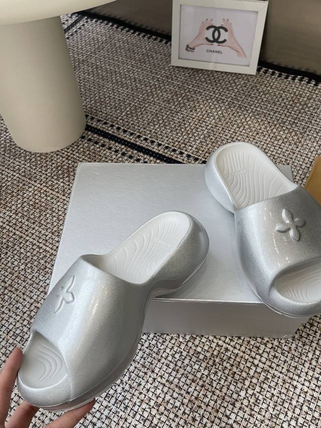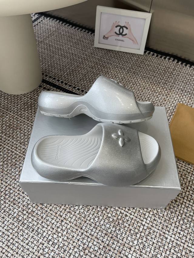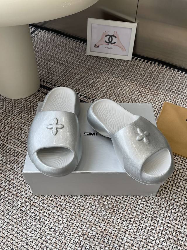 / 代购级黑色270 银色 Smfk 25Ss 小众潮牌爆款没计感浮雕一字厚底拖鞋 爆真的是很耐看越看越喜欢!矮个子宝宝的福音直接拉长身材比例!! 鞋身柔软舒适,鞋