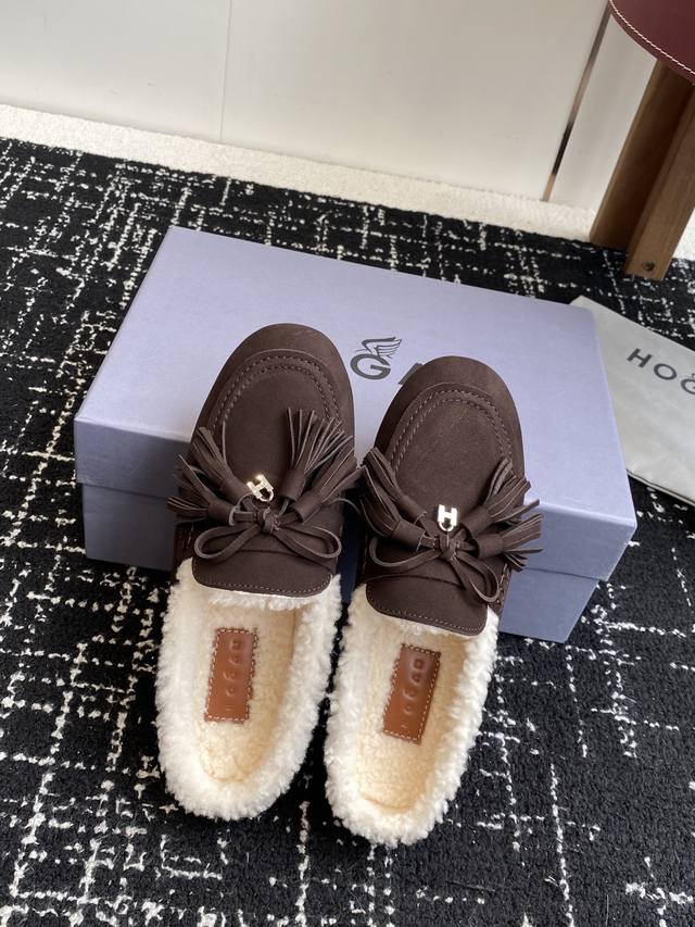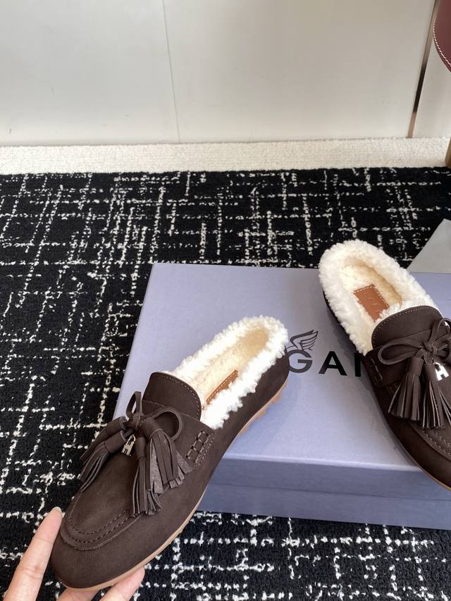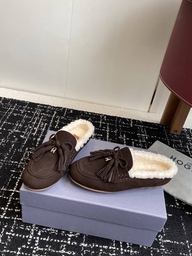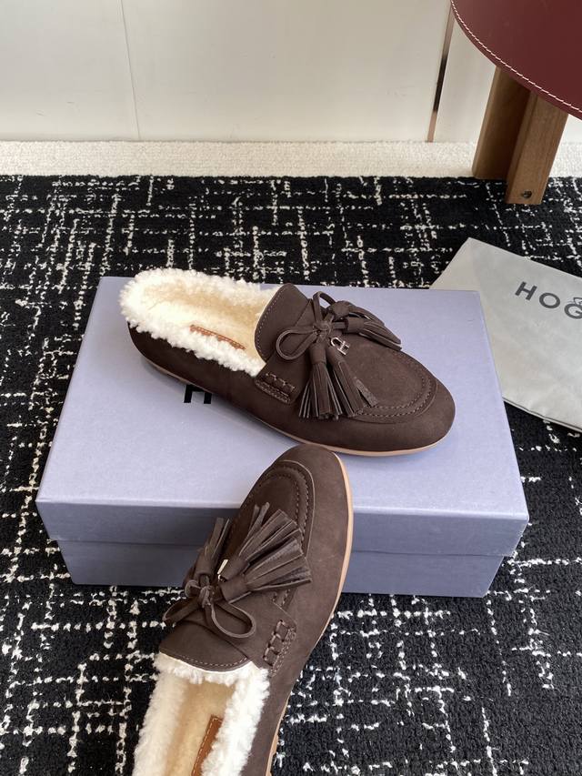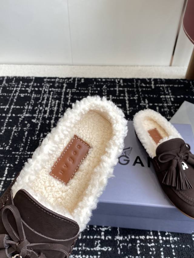 Ugg小红书穆勒串珠一脚蹬,流行马克线设计,翻毛口暖烘烘,小流苏装饰牛皮羊毛,三色:栗色 菜籽 巧色 !码数35-40码!