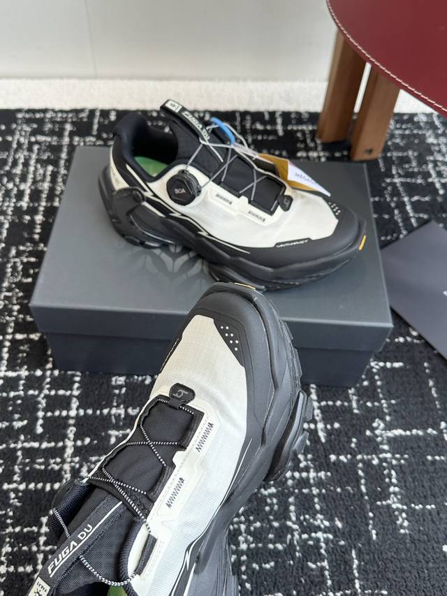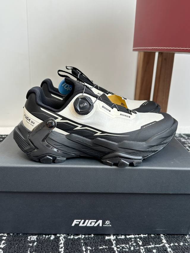 代购级 凯乐石 Kailas Fuga 大坡王 Du2 Boa Tpu减震越野跑步鞋 本次 Fuga 大坡王 在设计上采用凌厉的山脊线条重构设计语言,中底轮廓呈山脉起伏状。鞋身黑灰银相染,于砂石涌动间唤醒 孤独的力量 。鞋底配备了Vibram Megagrip 湿地止滑大底,Litebase 版本的选择带来更加的轻盈的脚感,更适合越野跑。除此之外,鞋底还配备了凯乐石独特的花纹 税角三棱齿花 设计,而 4Mm 的厚度 也能够帮助跑者 在情况突变的山地路段能够更好的锁住地面。鞋身配备了 Gaiter Hold