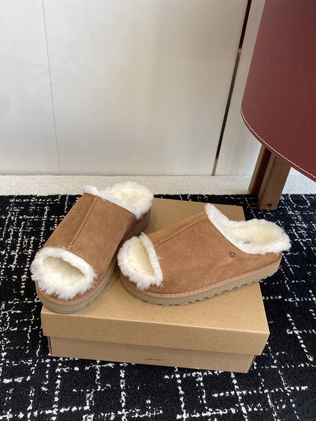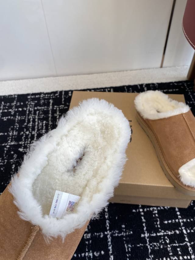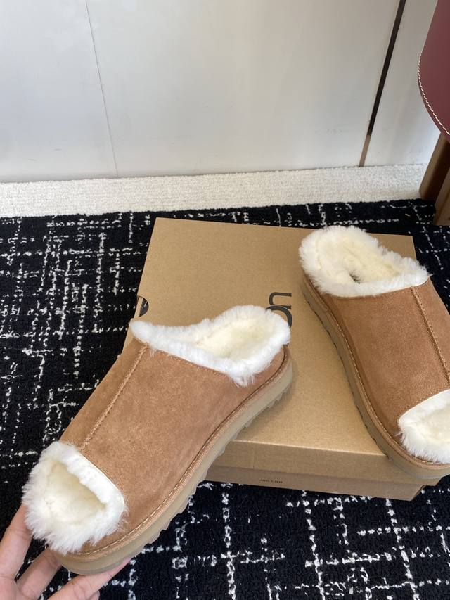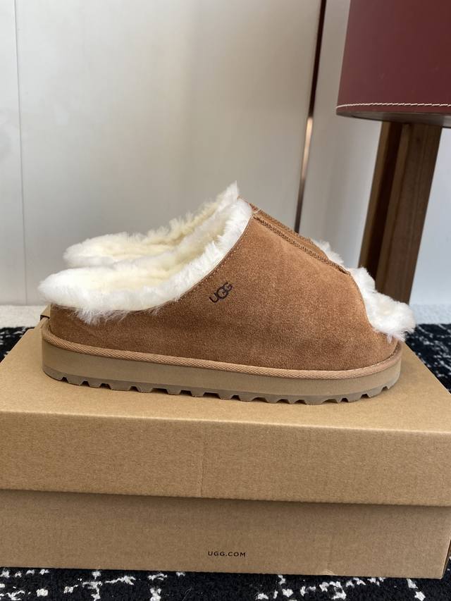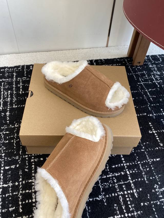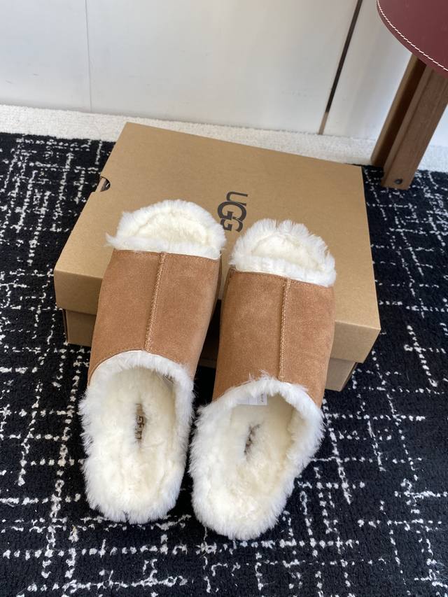 / 代购级 新款Ugg毛拖浅卡其+驼色两版,把松弛感焊在Jio上 麂皮面+羊皮毛一体内里,踩下去像陷进云里 半拖设计,下楼取快递、宅家晃悠都适配 秋冬缺双好穿的懒人