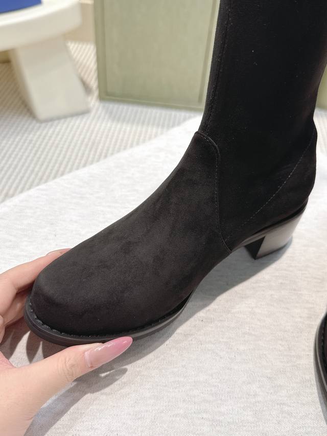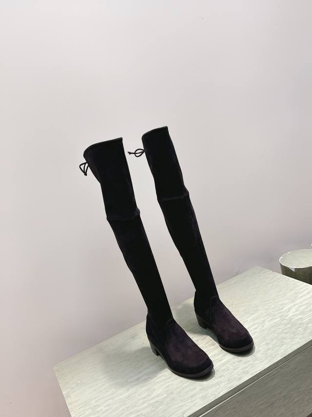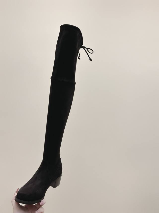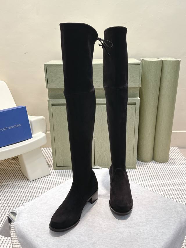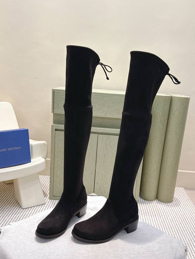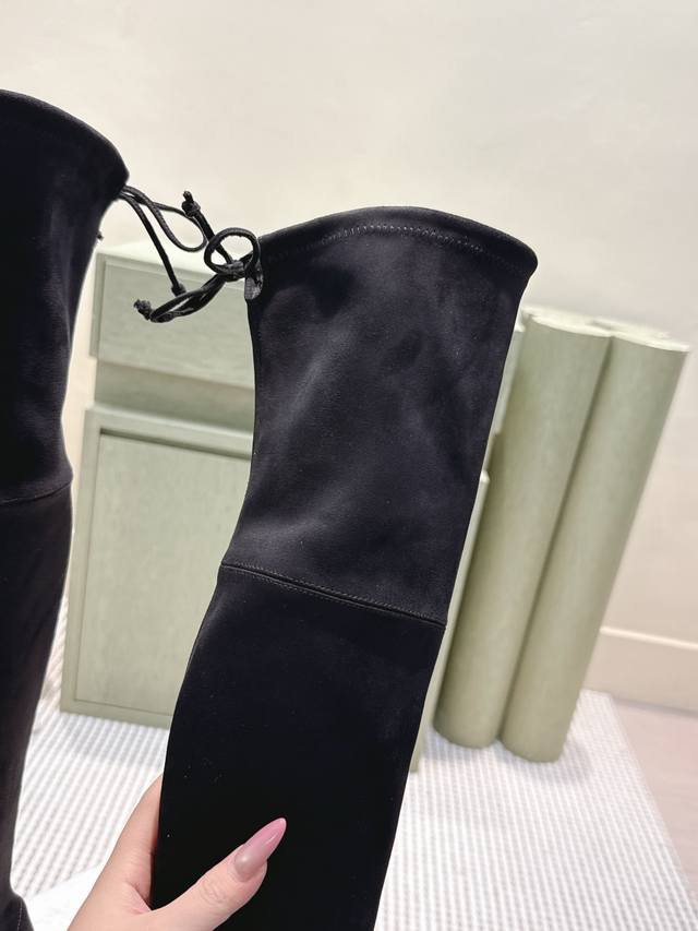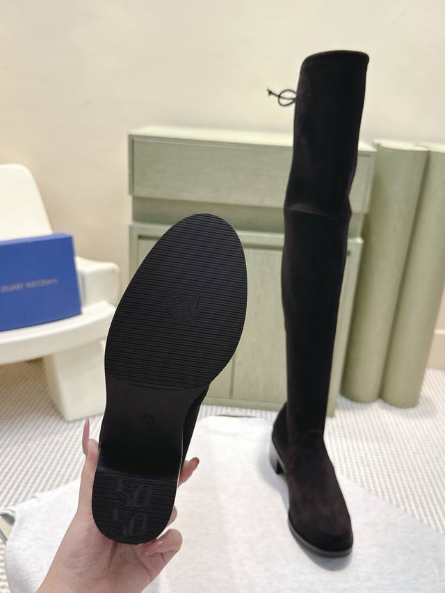 代购级 牛皮 DDD Stuart Weitzman 5050过膝靴,黑色磨砂皮+弹力拼接,柔软贴合腿部线条,显瘦显高。厚底设计增高5-6Cm,拉长比例,超适合小个子女生!靴筒不过膝,搭配短裙短裤都很Ok,秋冬穿搭必备。尺码偏大,建议选小半码哦~日常通勤、休闲都能轻松驾驭,舒适又时髦,是秋冬穿搭的百搭神器! DDD Size:35-39 40订做 DDD